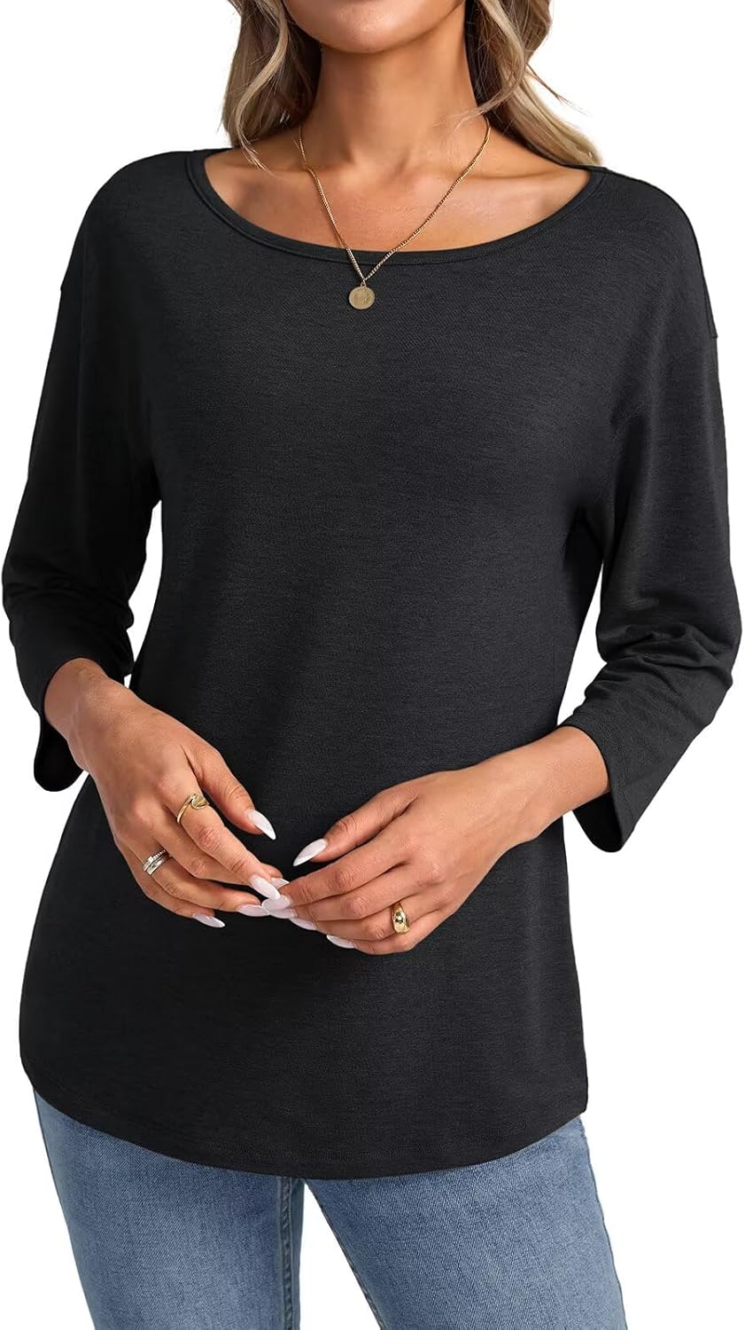 EasyGala Womens Boat Neck 3/4 Sleeve Shirts Summer Fashion 2025