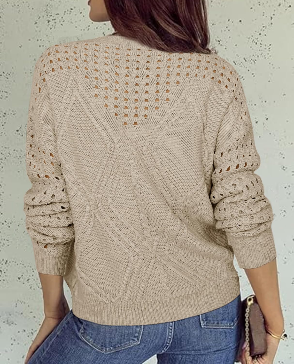 Customers like the sweater’s style, with one noting its peekaboo holes at neck and sleeves, and appreciate its soft feel and quality material. The color receives positive feedback, and customers find it not too warm. The fit receives mixed reviews, with some finding it true to size while others say it runs slightly big.