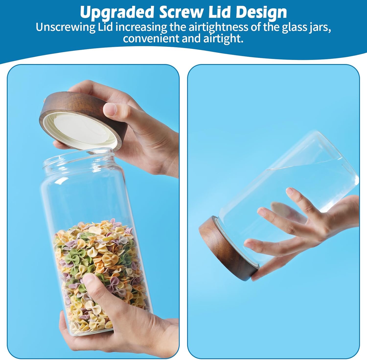 【WIDE APPLICATIONS】Glass canning jars storage are suitable for storing various dried ingredients to retain their freshness.Glass jars with wood lids perfect for storing dry food , such as,cookies,dried beans,liquid,pepper,oatmeal,jams,chutneys, rice, flour, tea, coffee, biscuits, candy,cheese,flour, sugar, seeds,etc. Keep your kitchen tidy and safe,saving space and convenient .