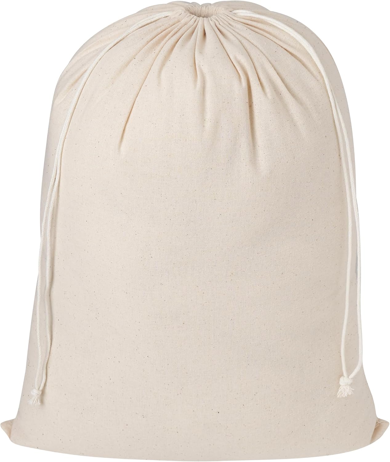 Natural Muslin Cotton Drawstring Bags, or Black Cotton Blend Available in Multiple Convenient Sizes Easy-to-Pull Double Drawstrings Sturdy, Natural and Reusable Natural cotton bags are excellent for DIY projects like tie-dye, stamping and painting