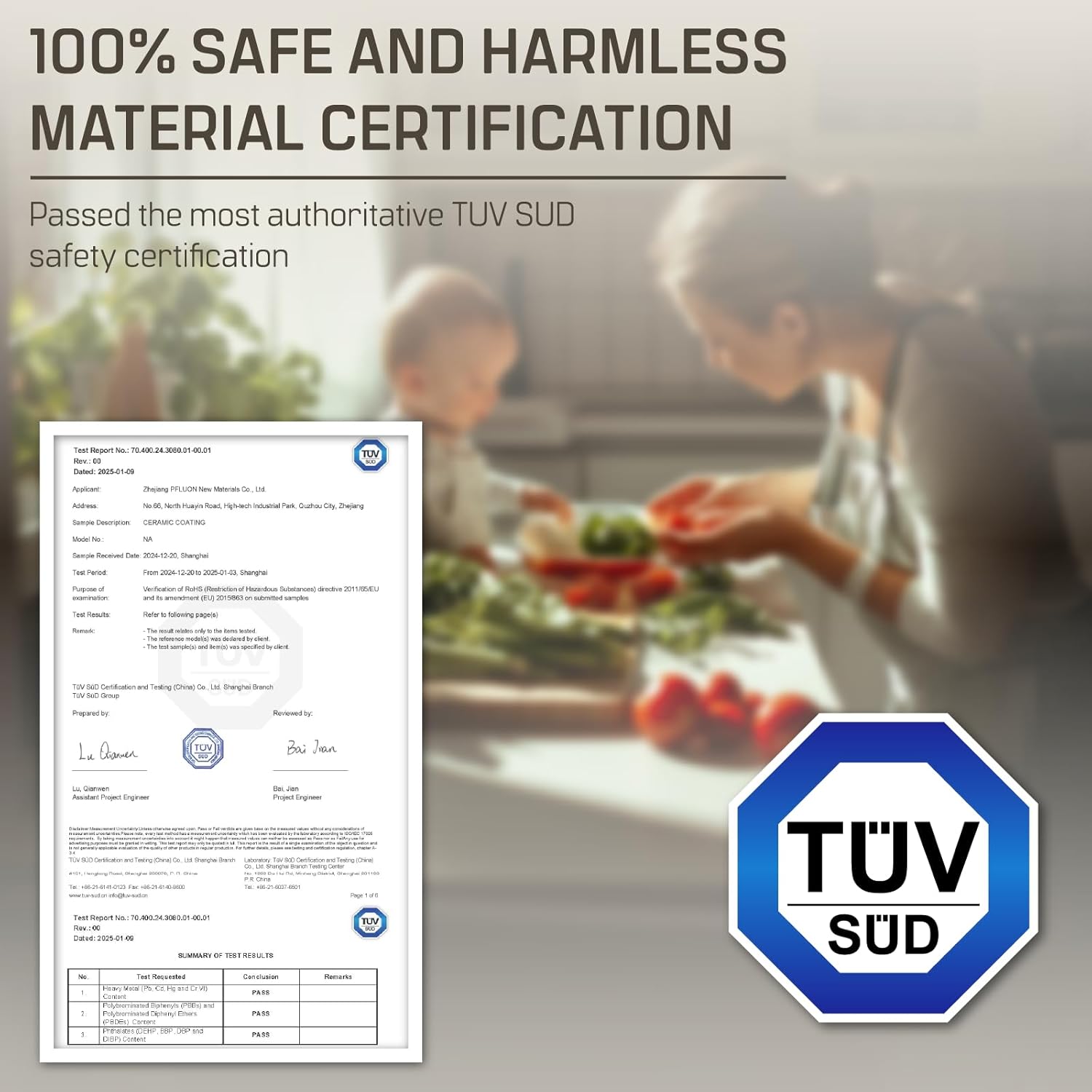 ใ๐ก๐ฎ๐๐๐ฟ๐ฎ๐น ๐ก๐ผ๐ป-๐ฆ๐๐ถ๐ฐ๐ธ Ceramic Coating for ๐๐ฒ๐ฎ๐น๐๐ต๐ถ๐ฒ๐ฟ CookingใCiwete cookware set features a natural, non-stick ceramic coating free from harmful chemicals like PFOA and PTFE. Passed Healthy and Safety TรV SรD certification. Enjoy effortless cooking and cleaning while ensuring a healthier, more efficient and eco-friendly kitchen experience for you and your family.