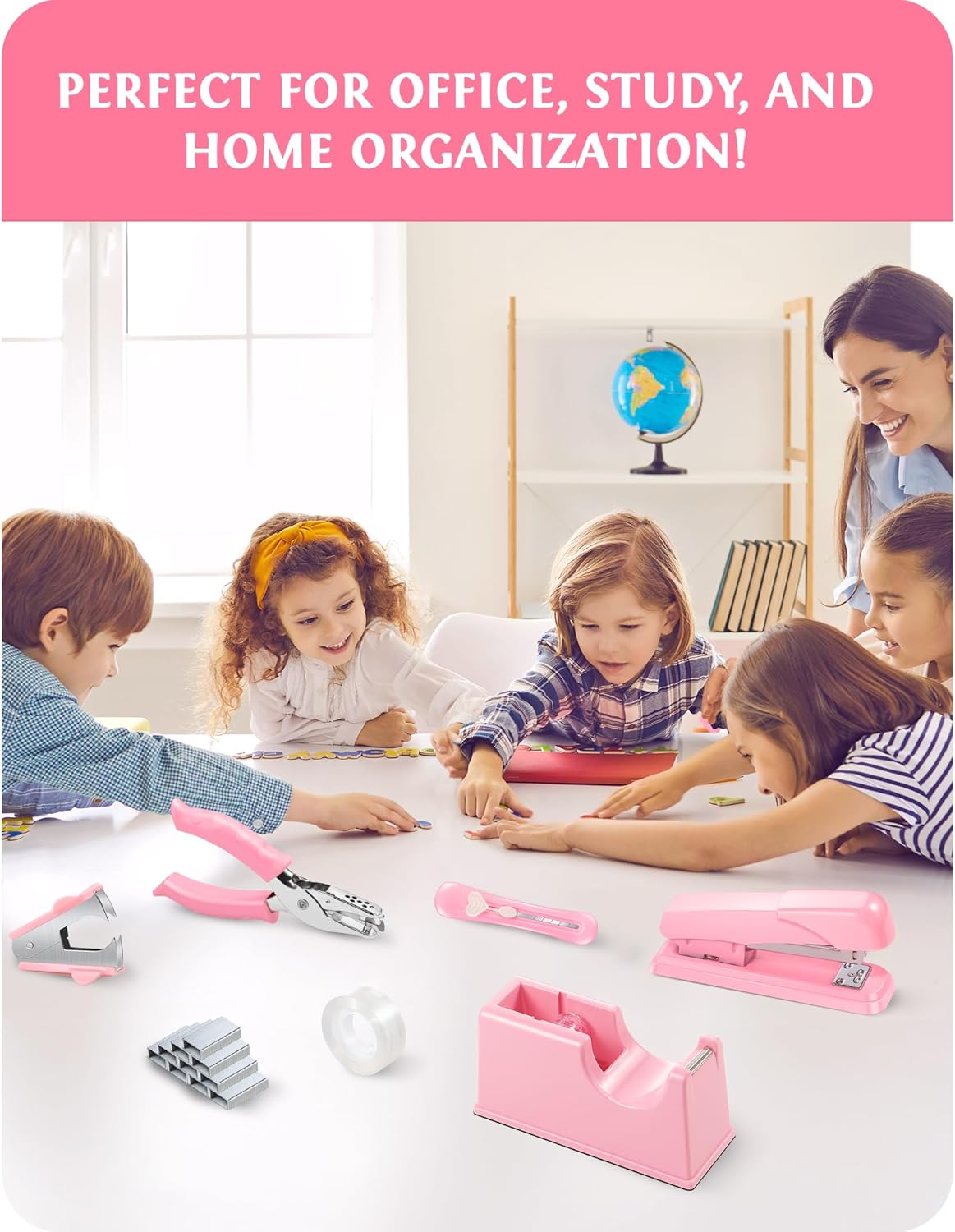 ✨ Complete & Organized Office Set – Includes a stapler, tape dispenser, hole punch, and more—thoughtfully curated for efficiency. Designed to keep your desk tidy while ensuring you have everything you need within reach.