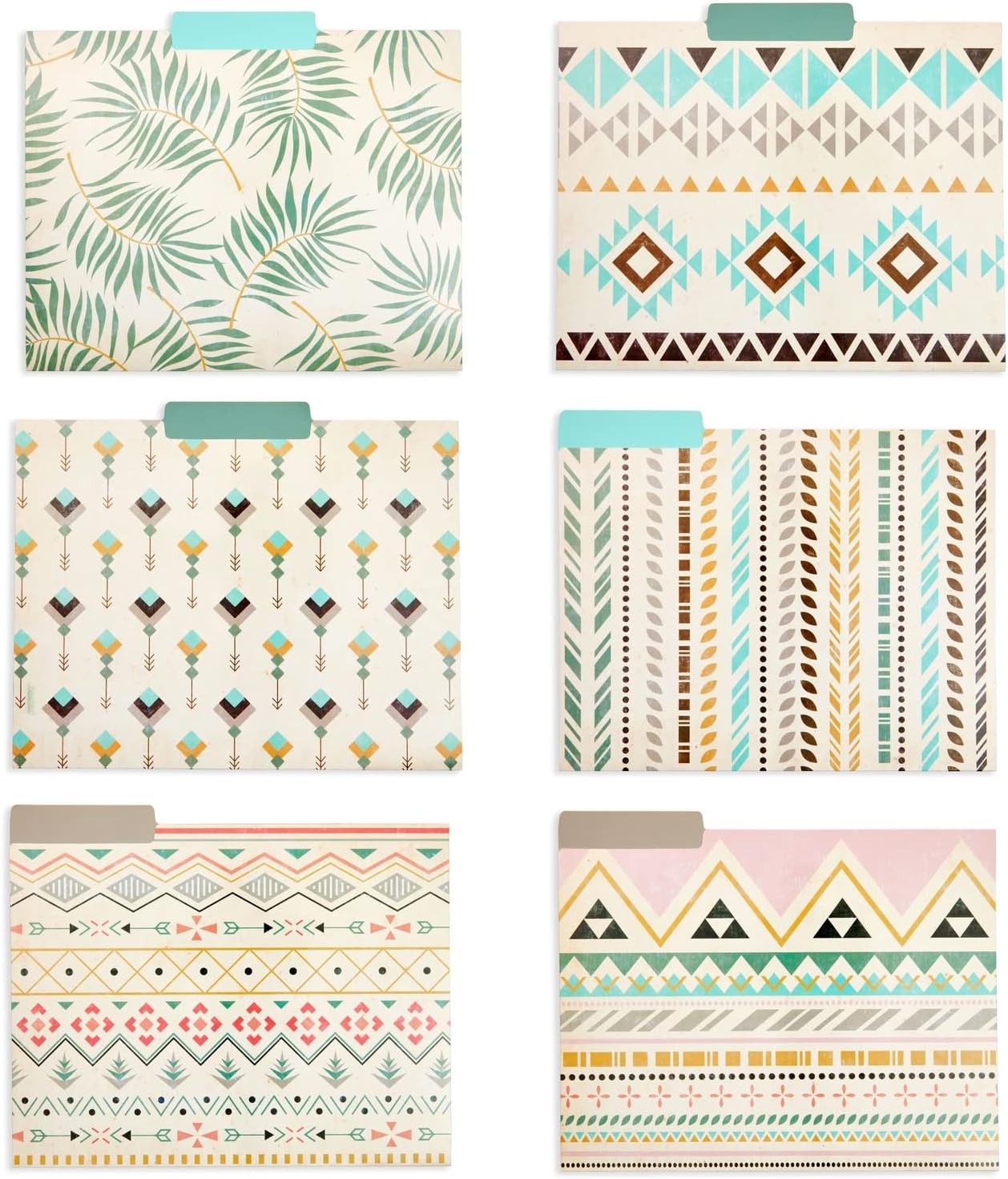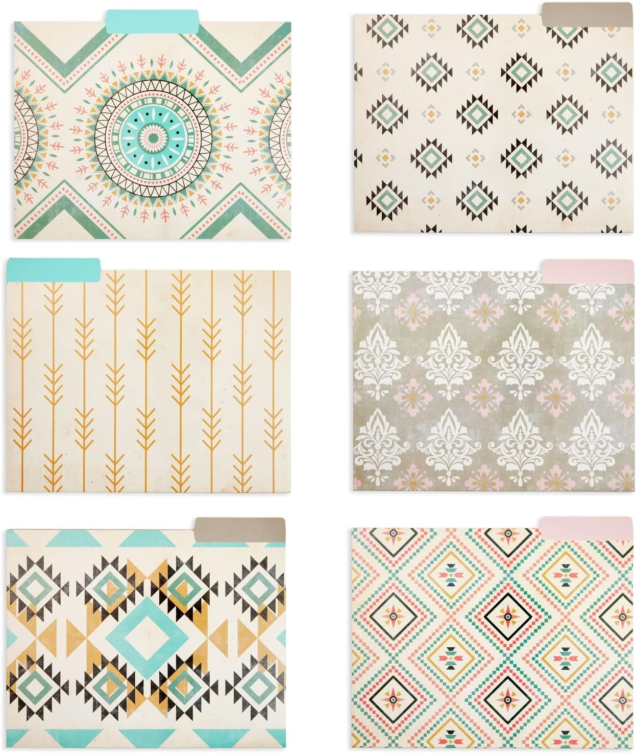 Boho-Themed Farmhouse Tab Folders: Easily organize papers, documents, notes, bills with this set of 12 letter-size decorative file folders in 12 unique designs