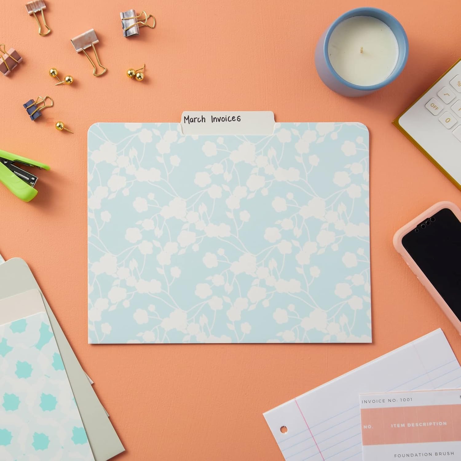 Aesthetic Patterns For Your Office: Our pastel file folders come in 12 charming floral patterns with soft colors like teal, blue, grey, pink, and ivory, enhancing your office decor effortlessly