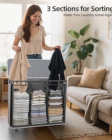 【 2 Section Smart Sorting】With laundry hamper 2 section design, easily separate darks and lights to prevent color mixing. Thoughtfully designed, this double laundry hamper keeps your laundry tasks organized and efficient.