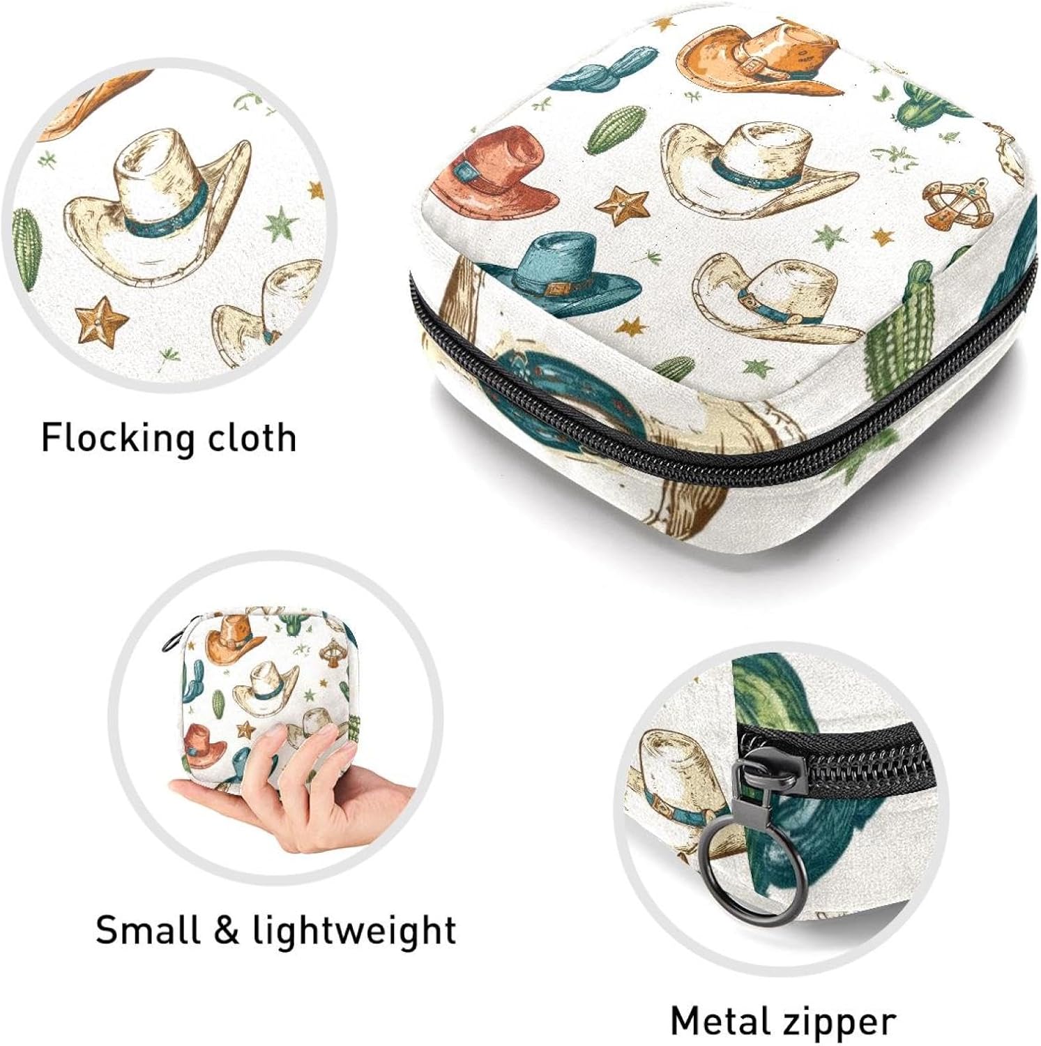 Be the first to review “1Pc Period Bag for Women, Menstrual Pad Pouch for School Office, Reusable Sanitary Napkin Storage Bag Portable Feminine Period Kit Bag Western Cowboy Hats with Cactus Stars Pattern”