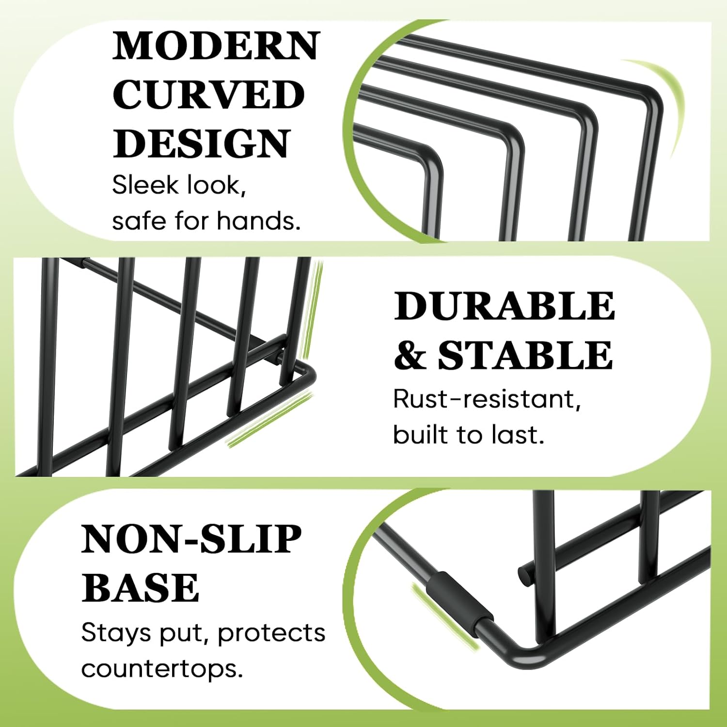 ๐๐จ๐ฆ๐ฉ๐๐๐ญ ๐๐ข๐ณ๐, ๐๐๐ง๐๐ซ๐จ๐ฎ๐ฌ ๐๐๐ฉ๐๐๐ข๐ญ๐ฒ: With 5 evenly spaced slots (1.25″ apart) and a space-saving footprint (8.7โ x 7.4โ x 6.3โ), this organizer fits perfectly on countertops or inside cabinets. It accommodates thin cookie sheets and bulky baking pans alikeโideal for organized, clutter-free kitchens.