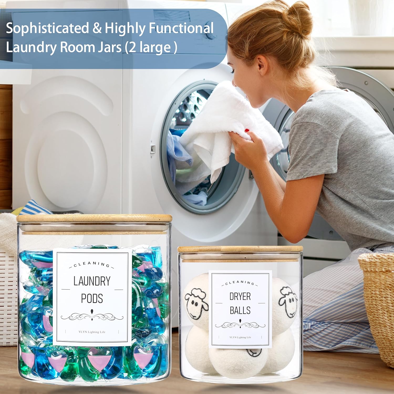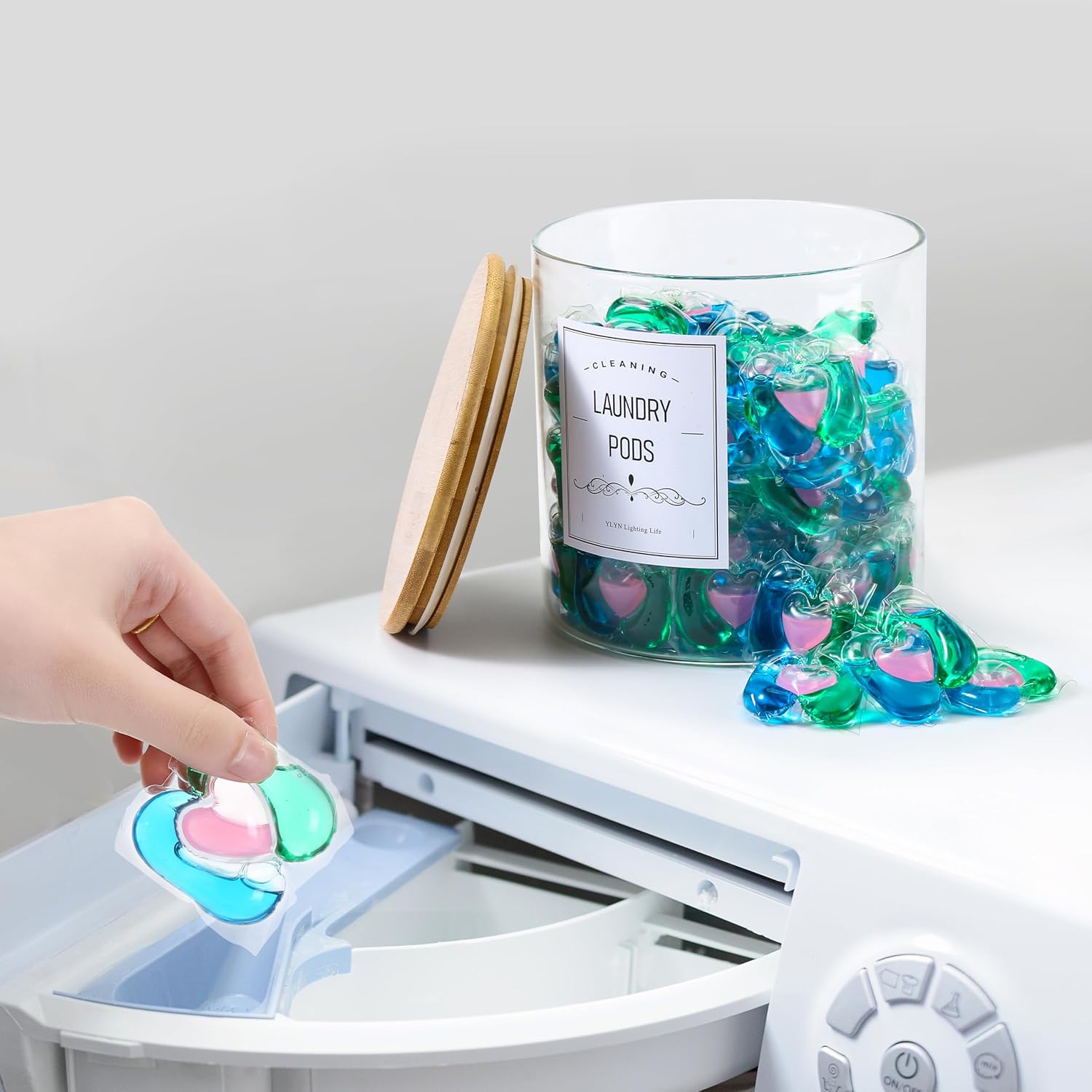 Premium Glass Material: Your well-being is our top priority. The glass jars in this set are constructed from premium, Rest assured that no harmful chemicals will compromise the integrity of your stored products, making these jars perfect for laundry beads container and lint container for laundry room.