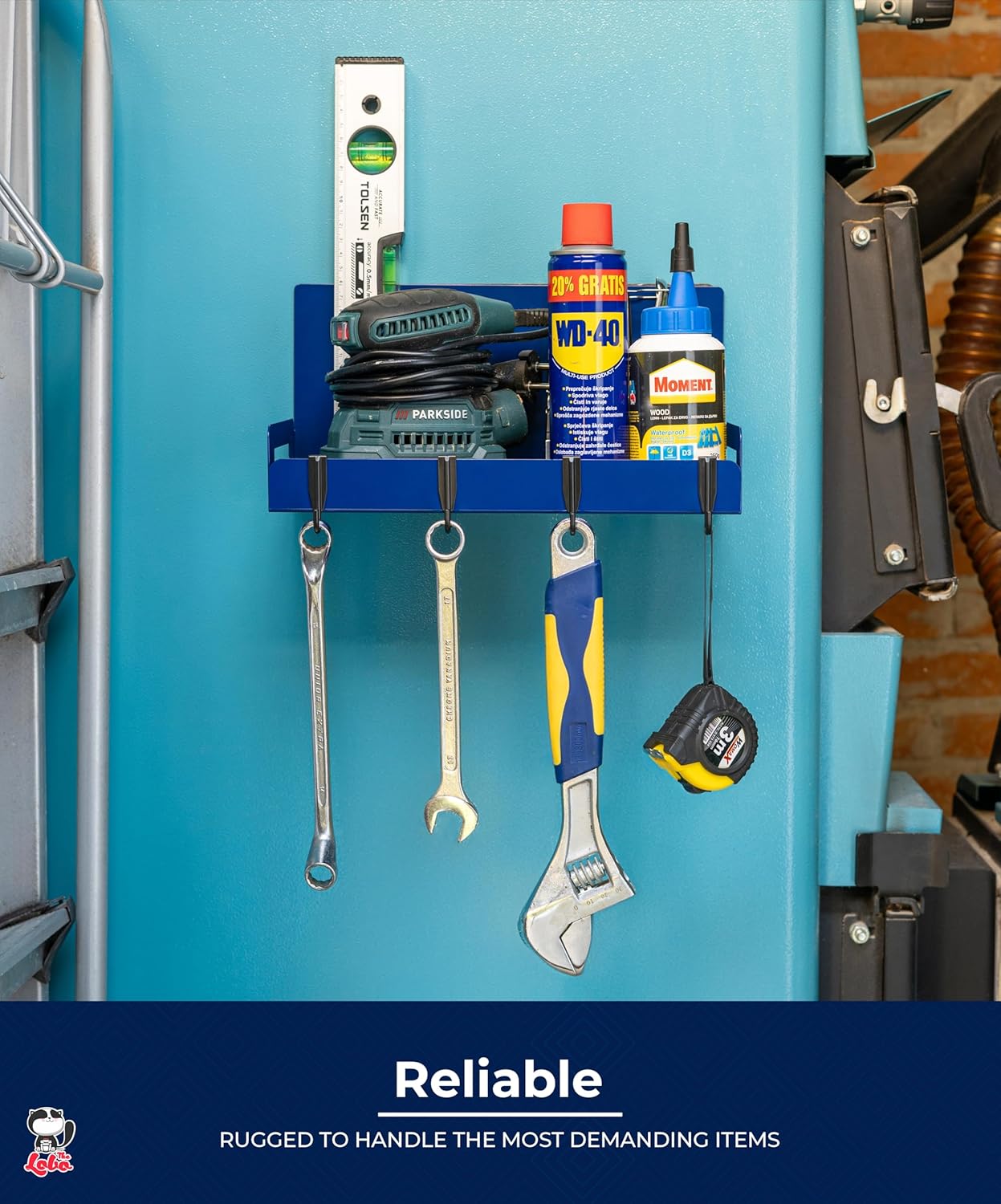 Customers find the magnetic rack sturdy and functional, with strong magnets that hold items well. They appreciate its color, ease of use, and storage capacity, with one customer noting it provides extra space. They like the hooks, though one customer mentions they don’t come with them.