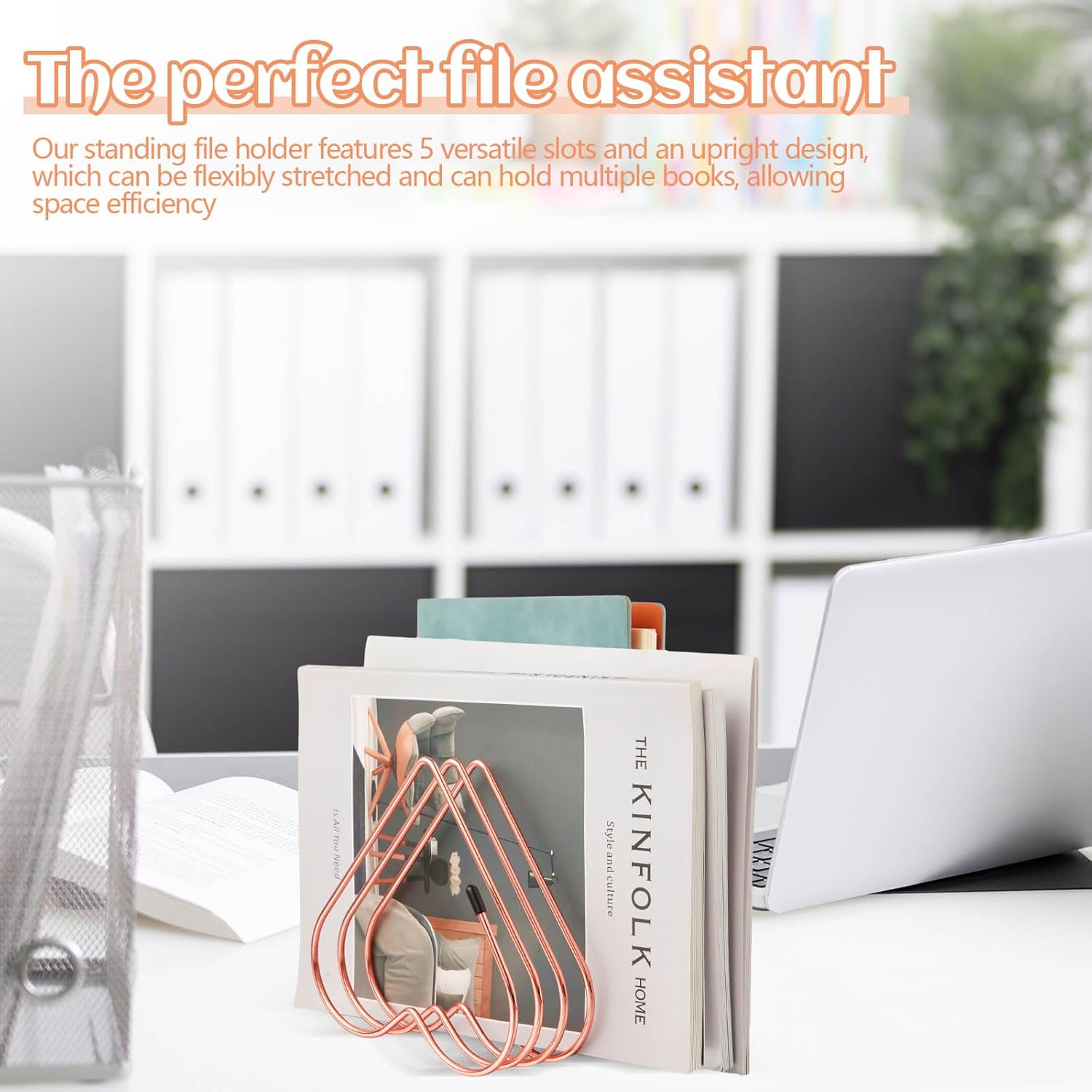 Space Saving Solution: our standing file holder features 5 versatile slots and an upright design, which can be flexibly stretched and can hold multiple books, allowing space efficiency; Reduce desktop clutter and stretch your productivity to next heights with our smart file holders