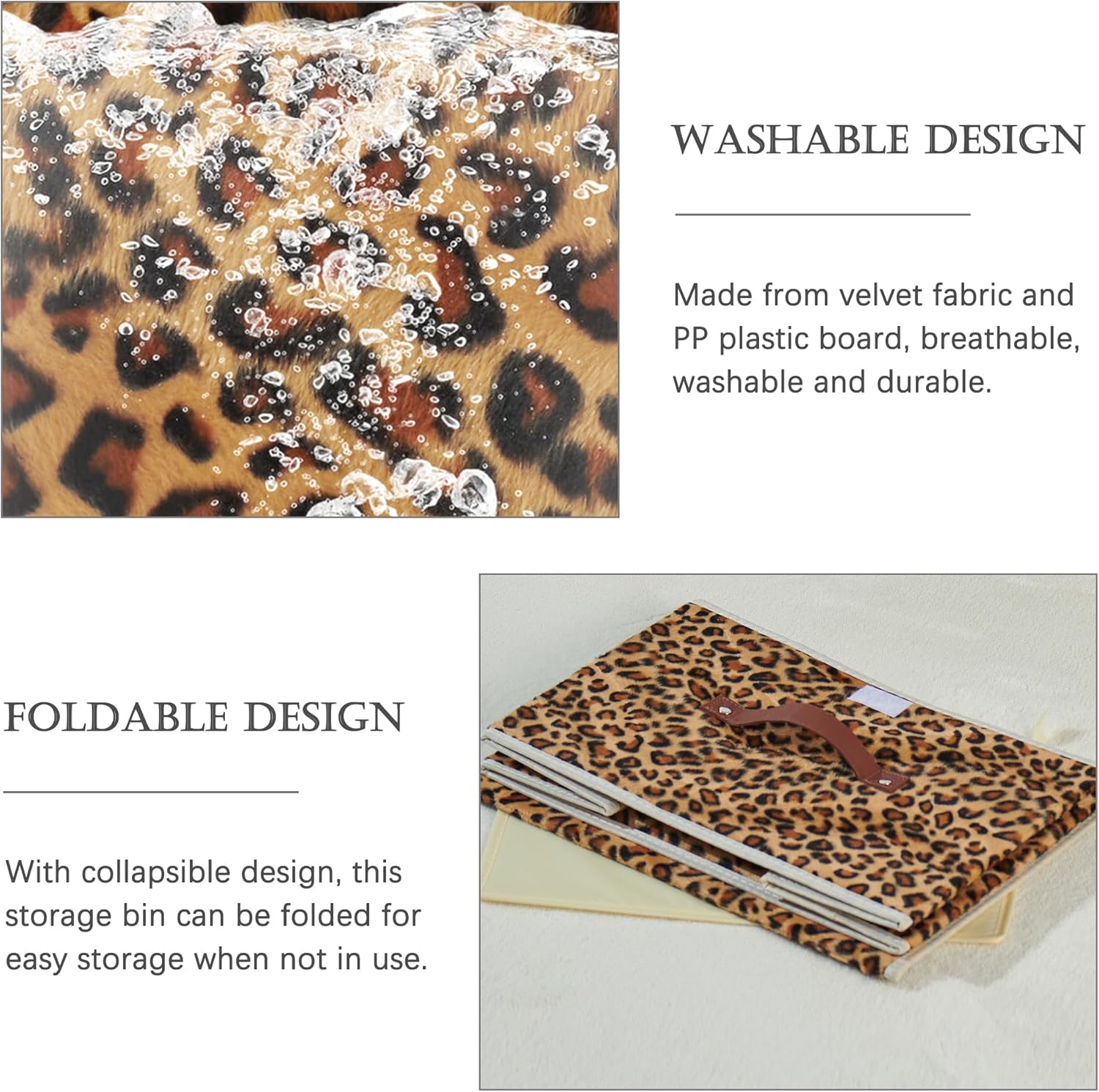 Package Includes: 2 Leopard Print Storage Bins Size: Small (10.2″L x 8″W x 7″H) Material: Velvet Fabric + PP Plastic Board + Faux Leather Handles Color: Leopard Print (Brown)