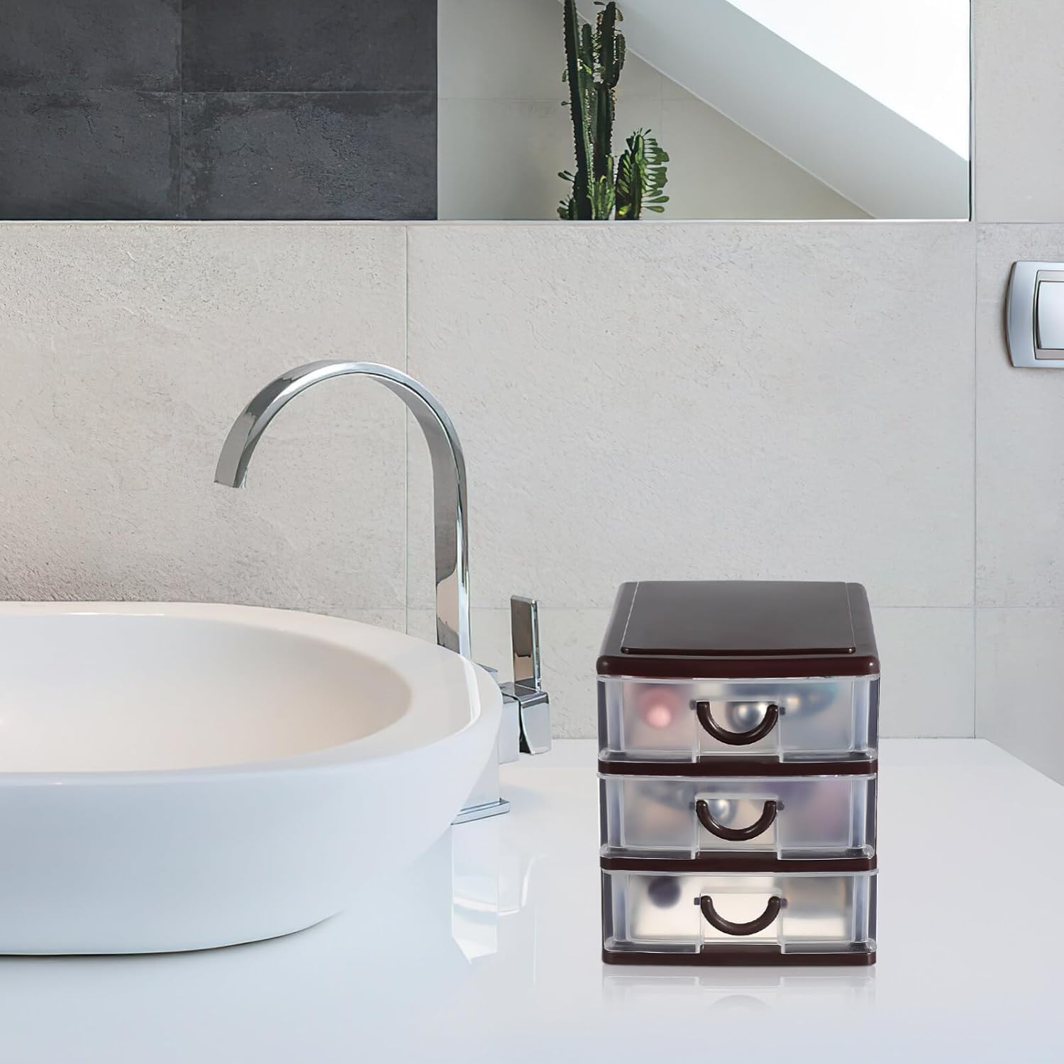 3-Drawer Organizer, STOBAZA Plastic Drawers Organizer for Makeup Cosmetics, Plastic Storage Drawers Organizer, Stackable Storage Binfor Desktop and Countertop Accessory, Stationery