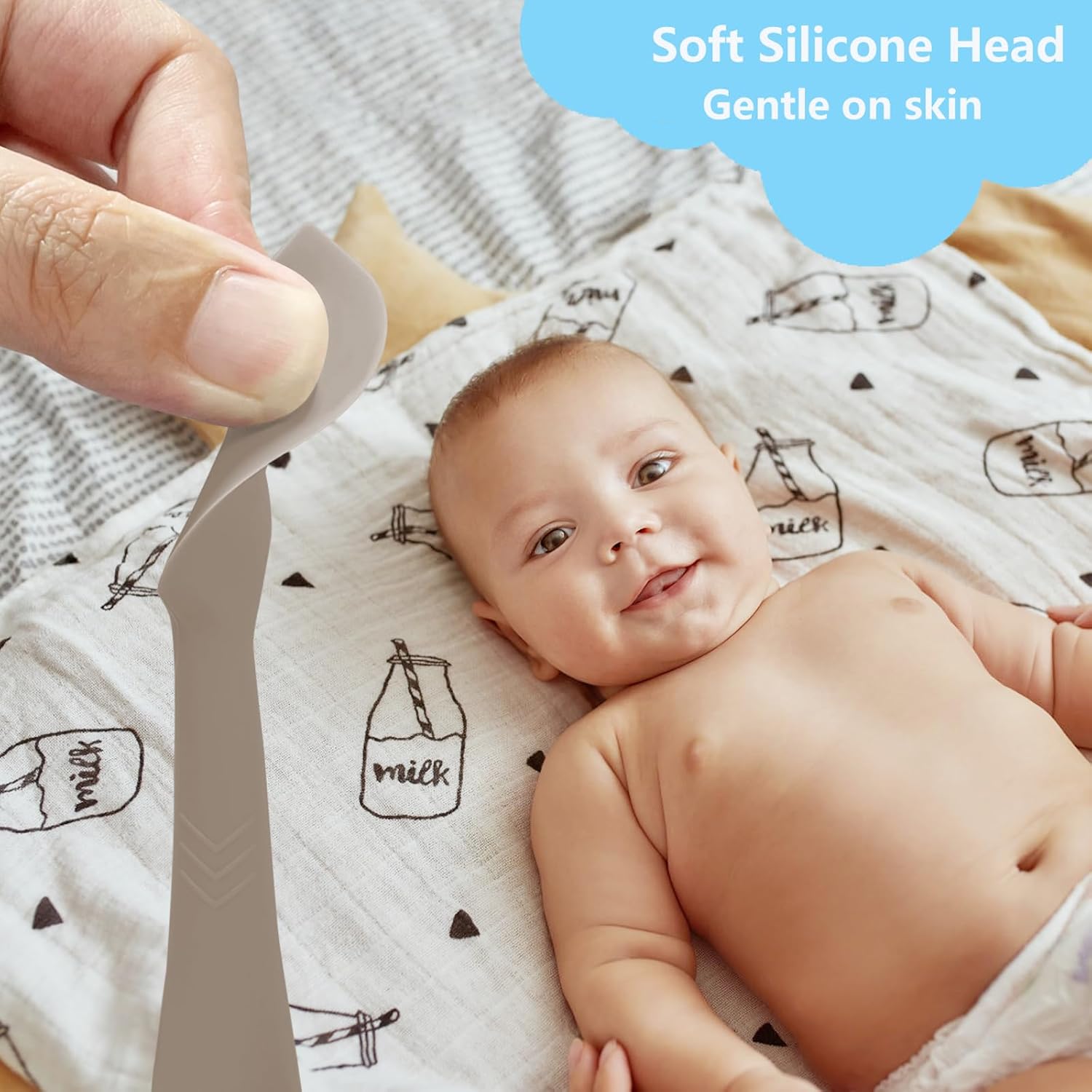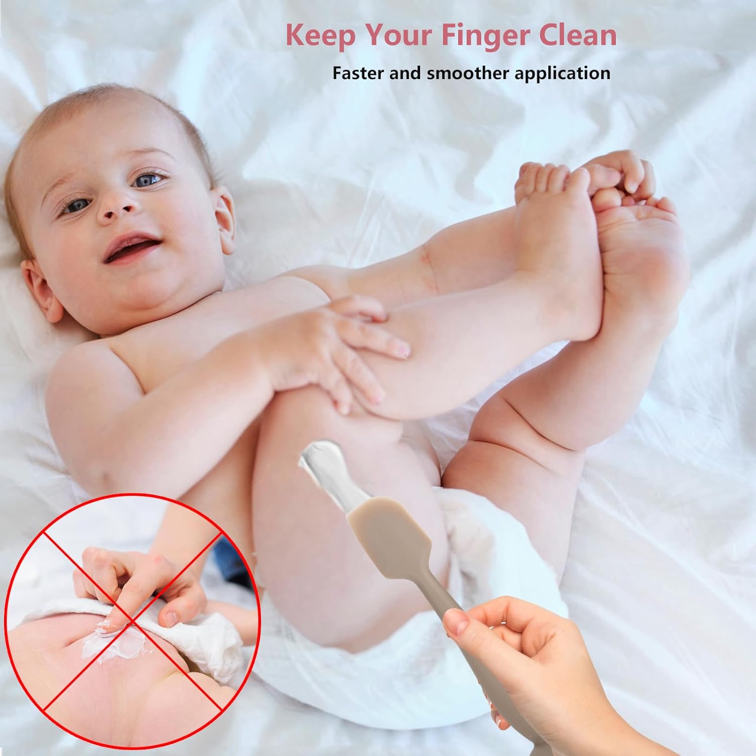 Soft Silicone Material: The diaper spatula is made of soft, flexible silicone. It is easy to scoop out the cream from the jar, apply it to the sensitive skin of the baby without scratching it