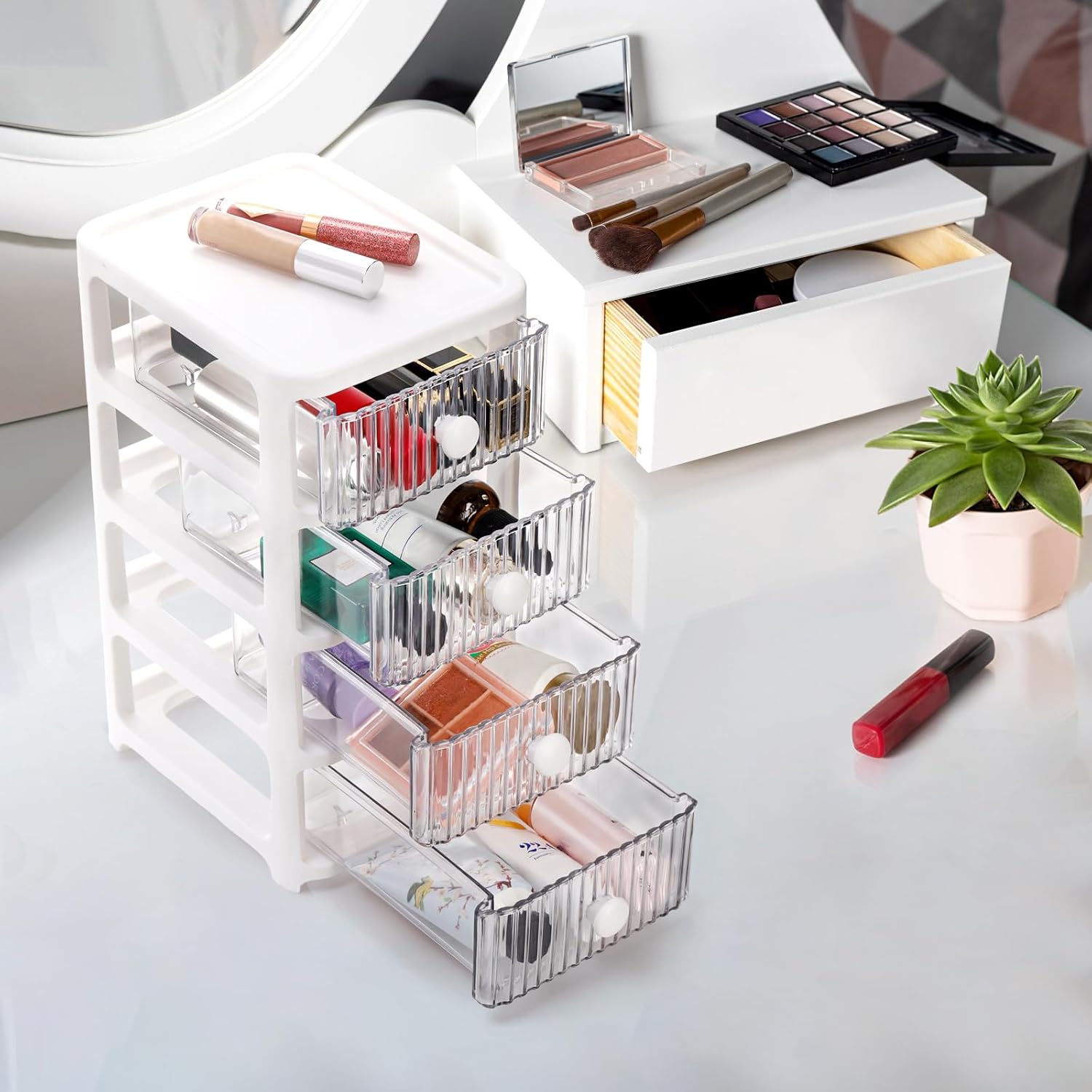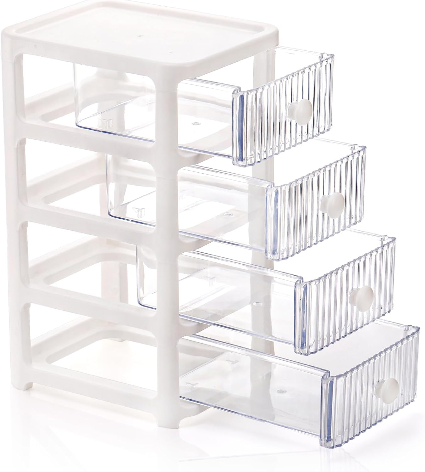 Functional Design: Our desktop organization container case features with white frame and clear drawers, which perfectly matches your home style. It can well protect your items away from dust or water to keep them clean and dry. And the transparent view of the drawer also helps you find the things you need easily and quickly.