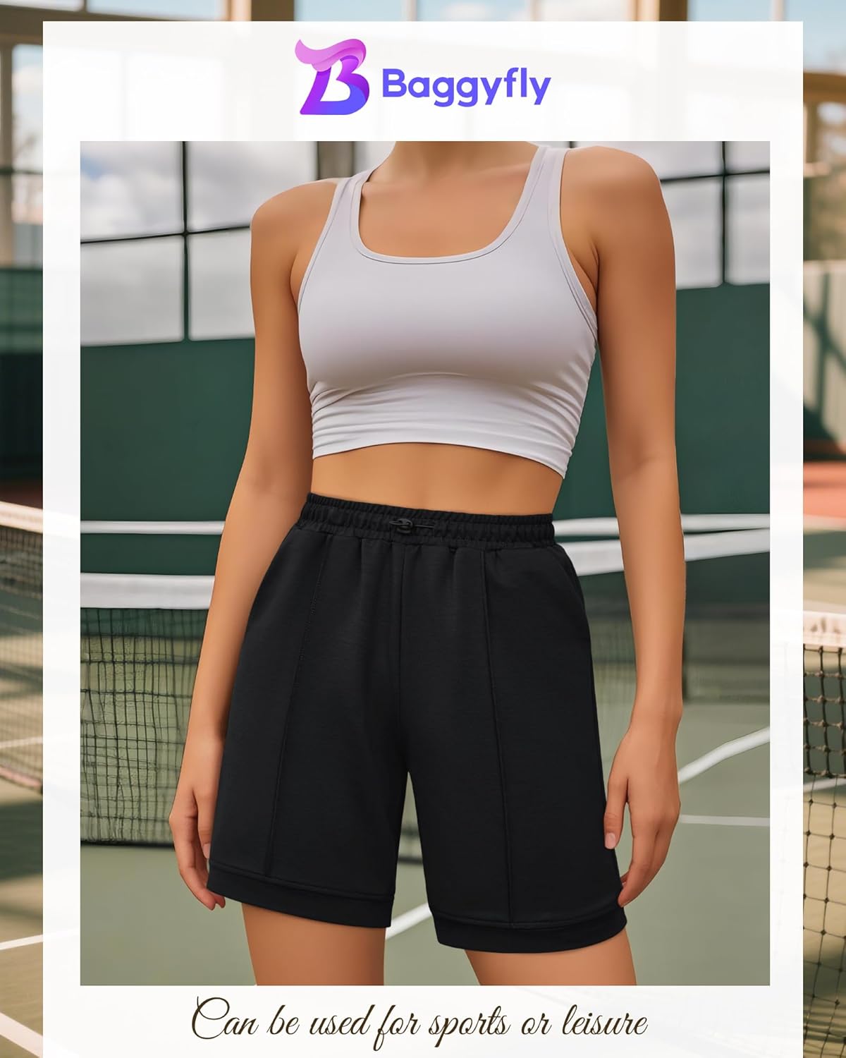 Our sweat shorts for women are a good combination of comfort and functionality. Their 9 inch length won’t make you feel too long or short, providing good coverage and a beautiful silhouette to keep you stylish in summer and spring