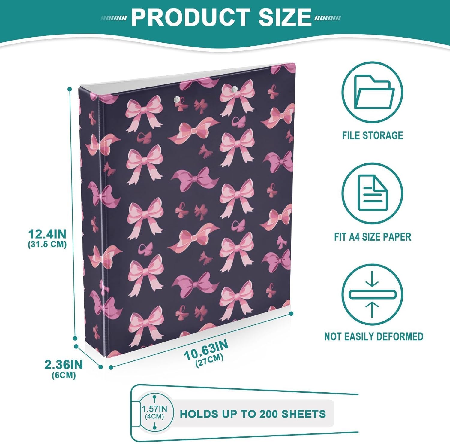 3 Ring Binder 1 Pack Feminine Bow Binder with 2 Pockets Three Ring Binder with 1.5 inch Round Ring for School or Office Supplies