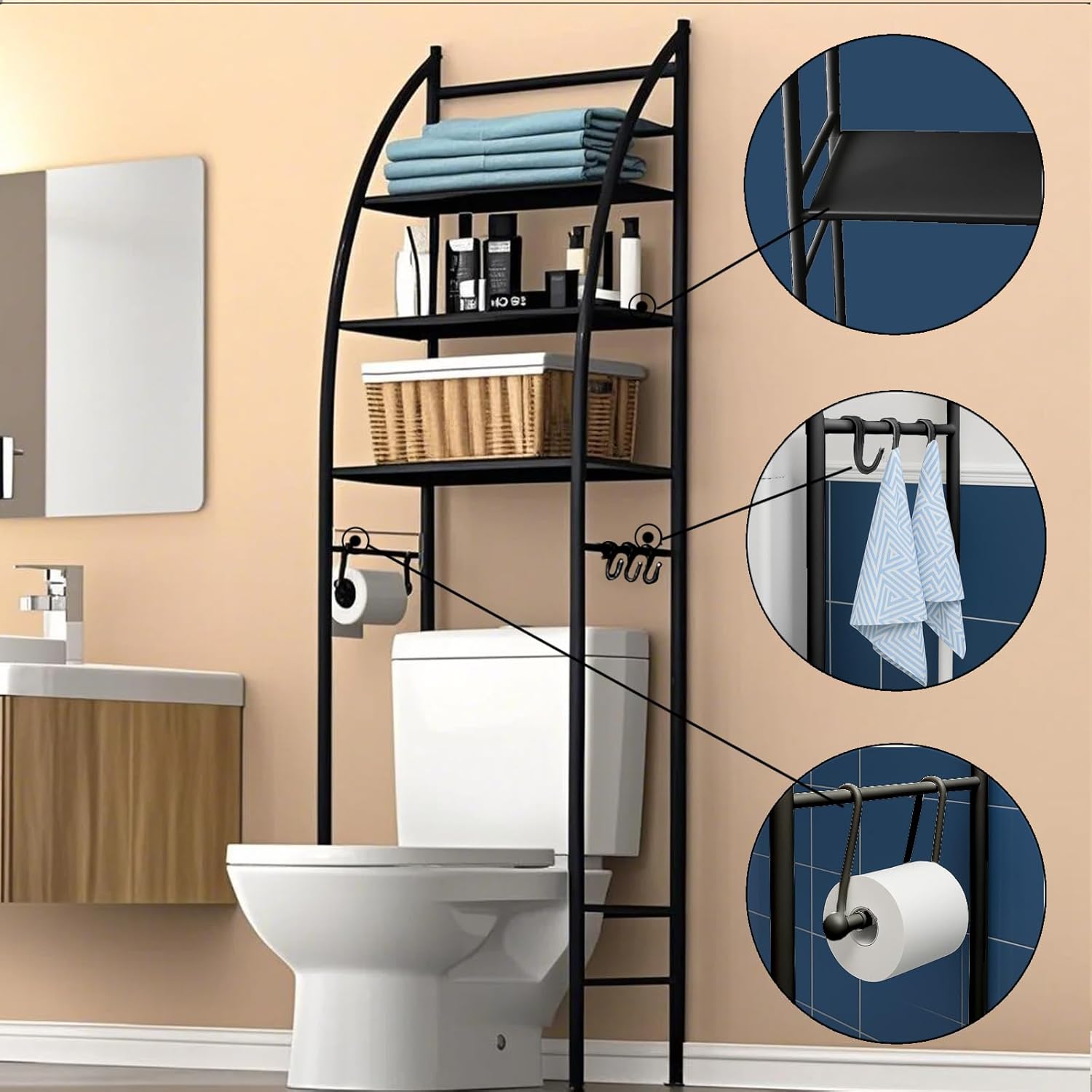 Maximize your bathroom space with this 3-tier bathroom organizer shelf, designed to fit over the toilet, providing ample storage for toiletries, towels, and more without occupying floor space.
