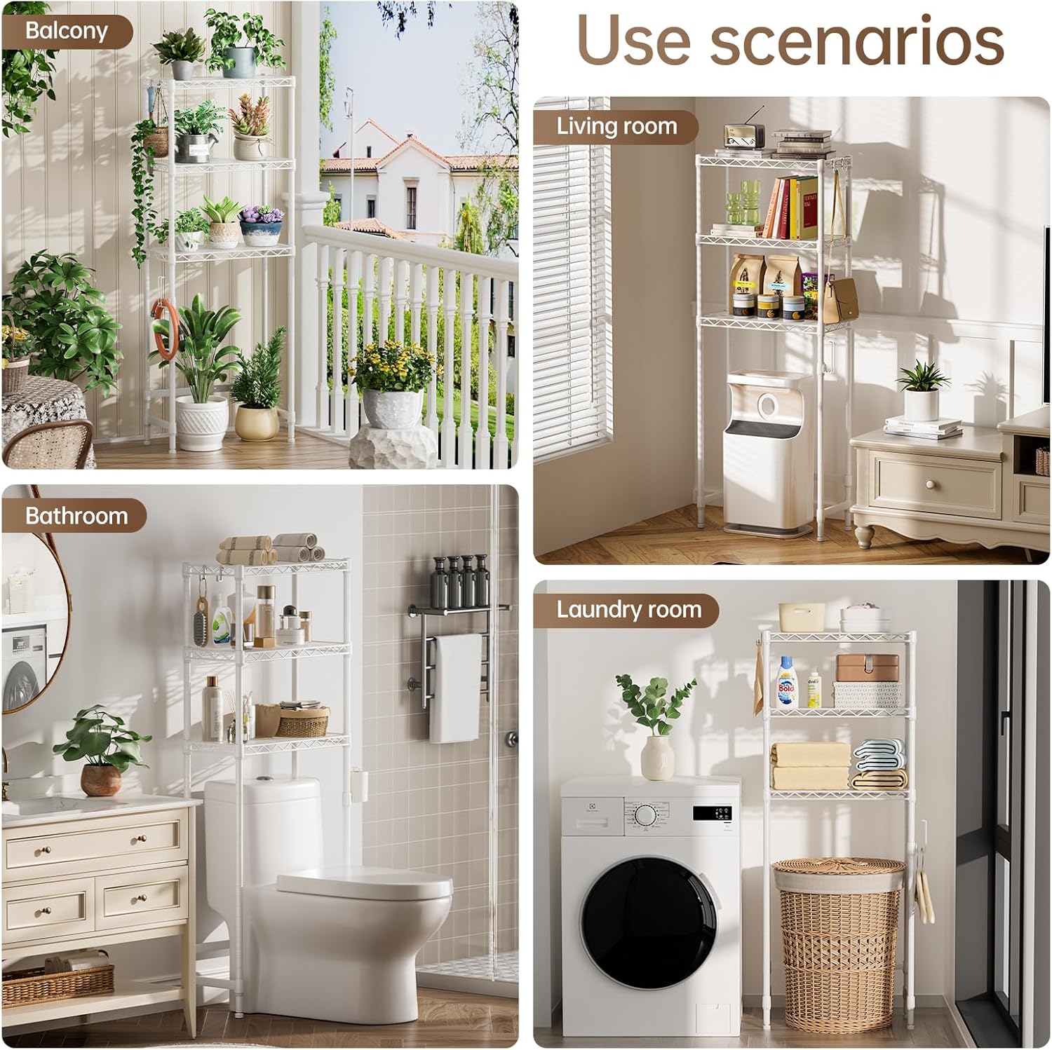 【Maximize Vertical Space – No More Bathroom Clutter】This 10″Dx24″Wx66″H Bathroom rack fits perfectly above standard toilets,adding 3 spacious shelves.Store towels,toilet paper,shampoo,plants,or laundry supplies – free up 80% of your countertop space in seconds