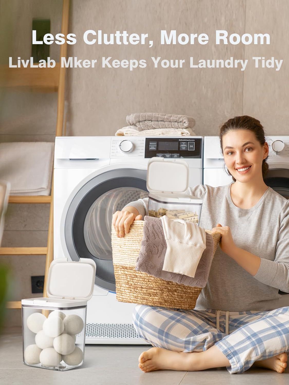 Easy One-Press Lid: LivLab Mker‘s laundry pods container features a convenient one-press lid,designed for effortless access even with wet hands, enhancing convenience during laundry tasks