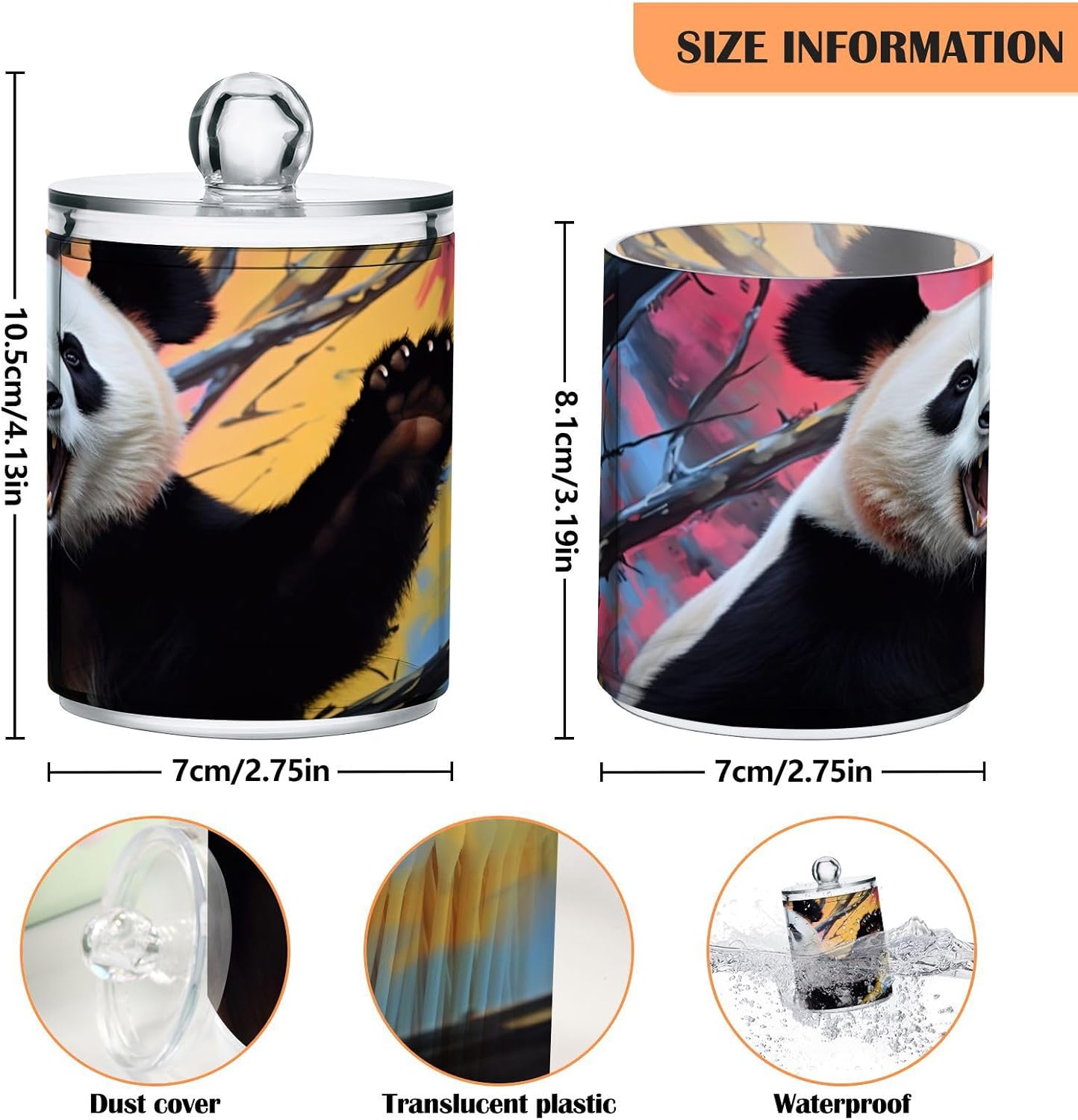SIZE:Qtip Holder Dispenser Dimensions is 10.5(H)x 7(D)cm/4.13(H)x 2.75(D)in. Set of 4 cosmetic storage jars allows you to easily organize your makeup or bathroom.