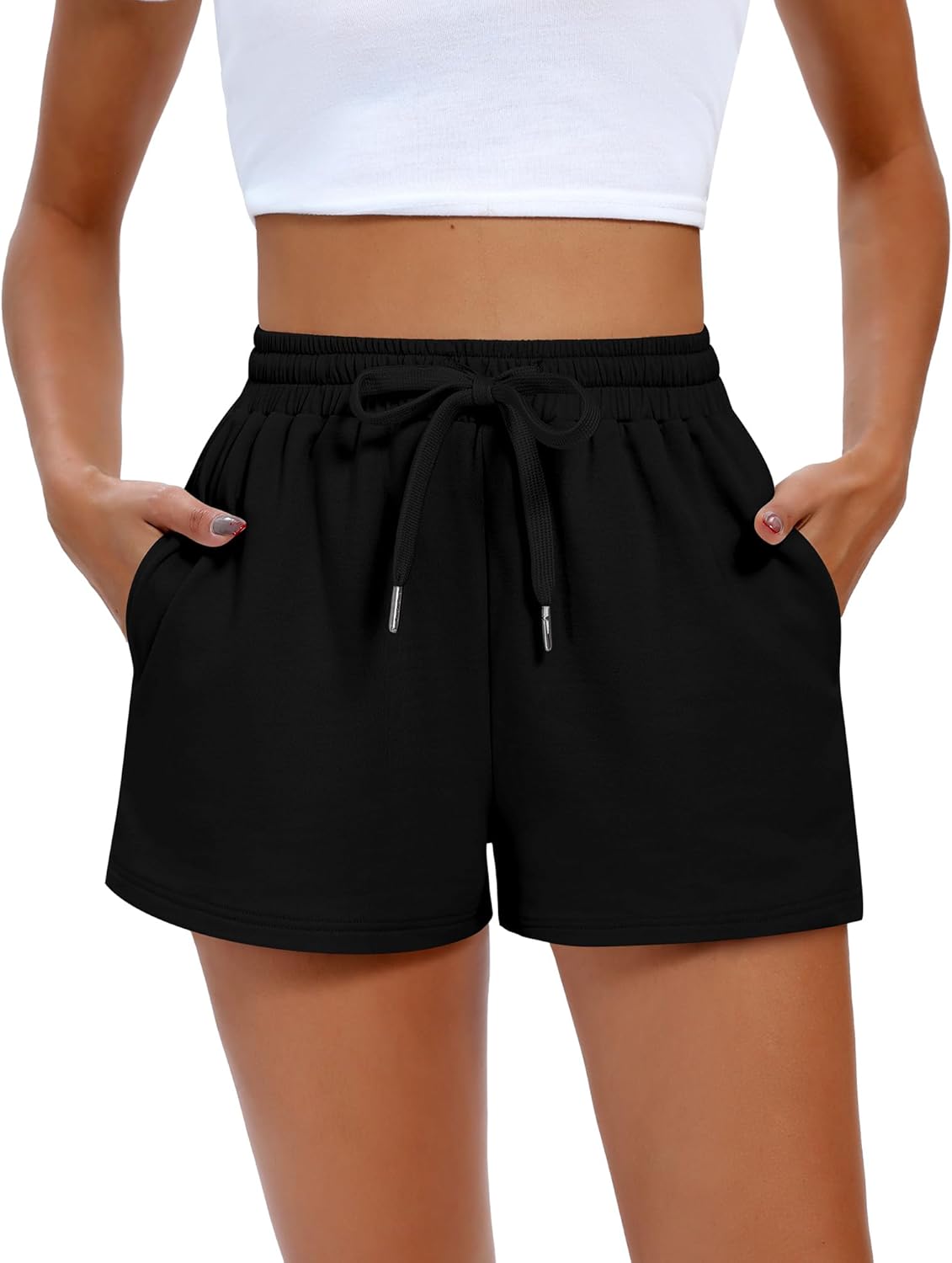 4 Pack Women’s Sweat Shorts Casual Summer High Waisted Drawstring Athletic Comfy Shorts with Pockets Lightweight