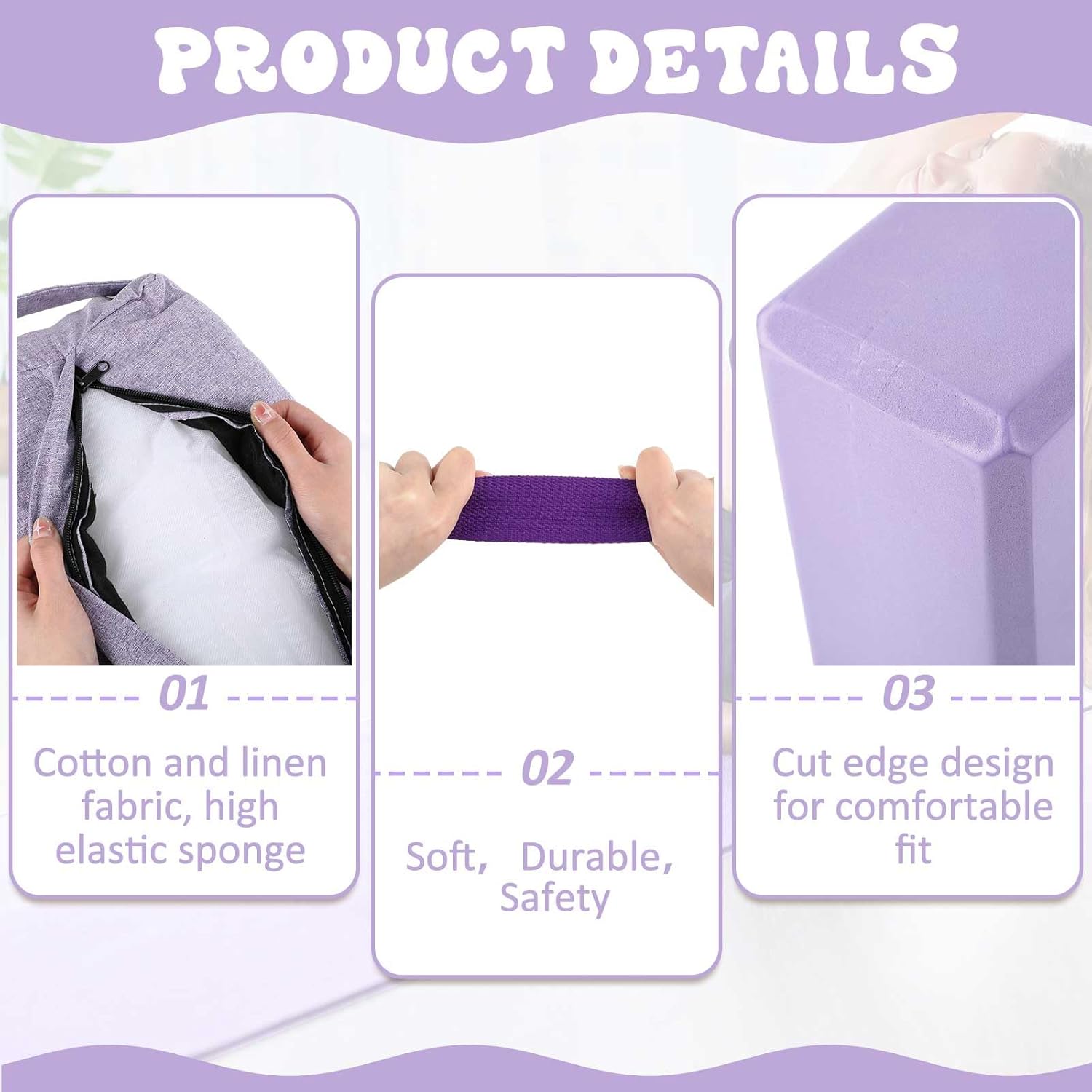 Highly Versatile and Portable: the yoga cushion, yoga blocks and strap in this set are lightweight and compact, making them easy to carry; Furthermore, the sponge yoga bolster is soft and flexible, offering well comfort while not compromising on portability