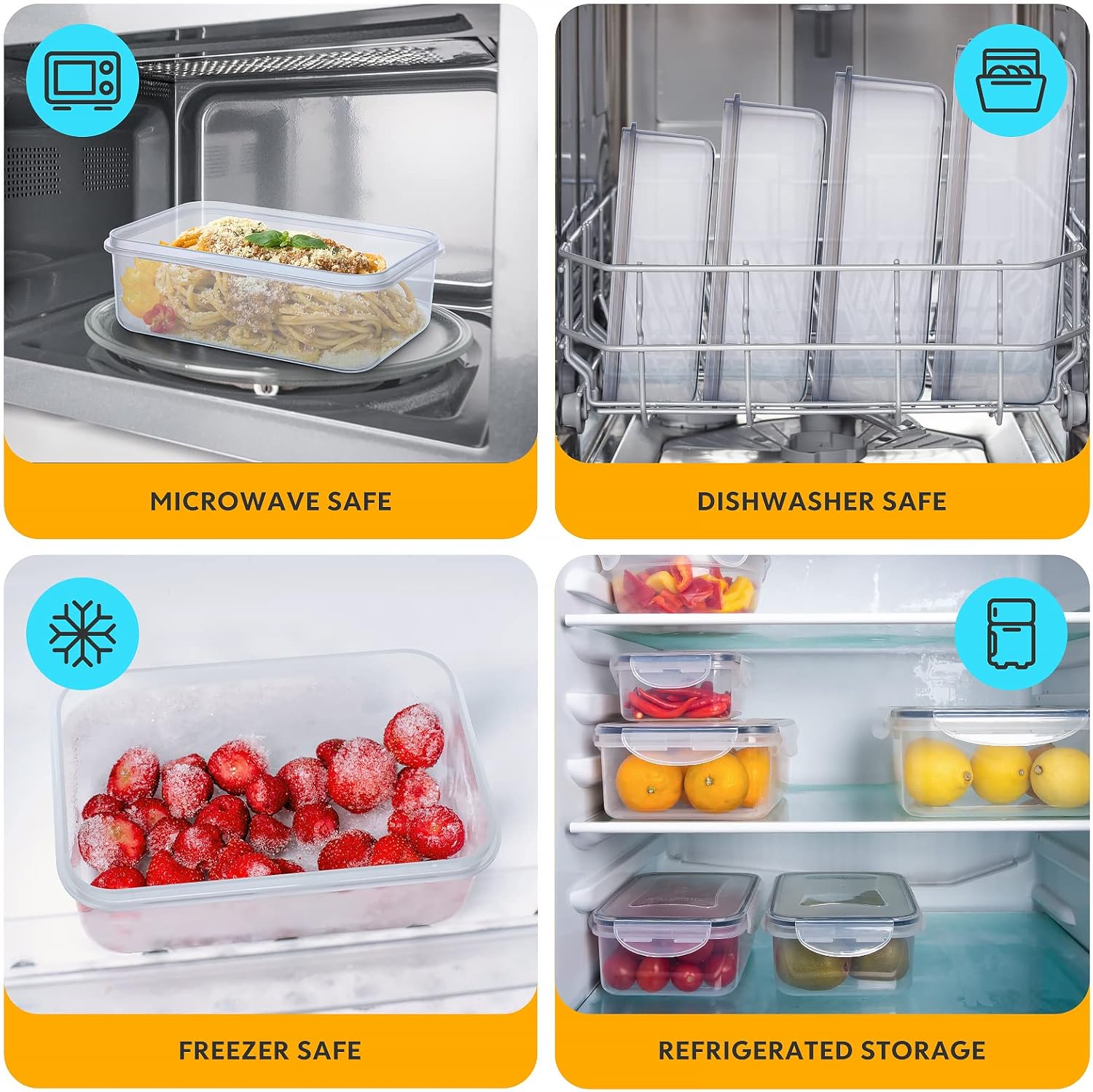Crafted from food-grade, BPA-free materials, our containers are not only safe for your health but also incredibly durable. The microwave, dishwasher (without the lid), and freezer safe design adds to your convenience, making it easier than ever to store, reheat, and clean your containers.
