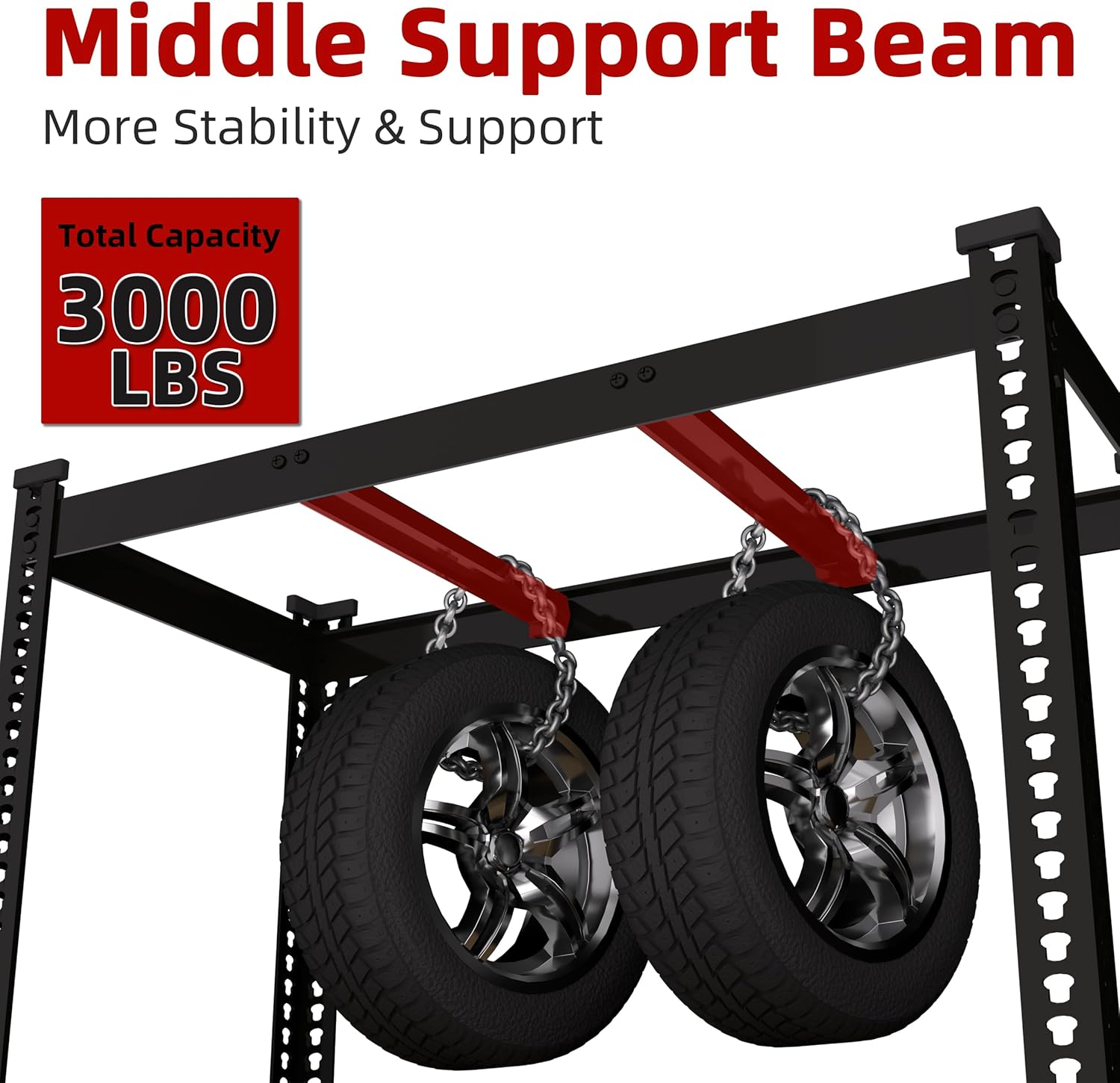Our utility shelf includes 2 support bars on each tier, enhancing stability and offering strong support for stored items. With a total load capacity of up to 3000 lbs(48″W x 24″D x 72″H Shelf), it effectively accommodates the storage requirements of various heavy items.