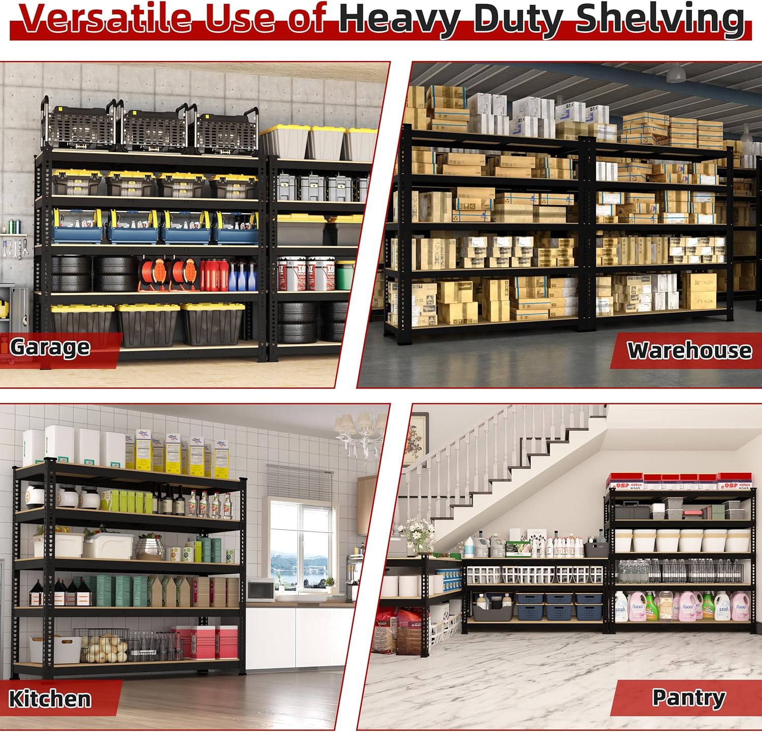 – Endless versatility: The 5-tier shelves on this heavy-duty storage unit are adjustable, allowing you to customize the unit to fit the size and shape of any item you need to store. It’s perfect for organizing your space, such as the garage, warehouse, basement, pantry, kitchen, living room, shed, laundry, closet, office, etc