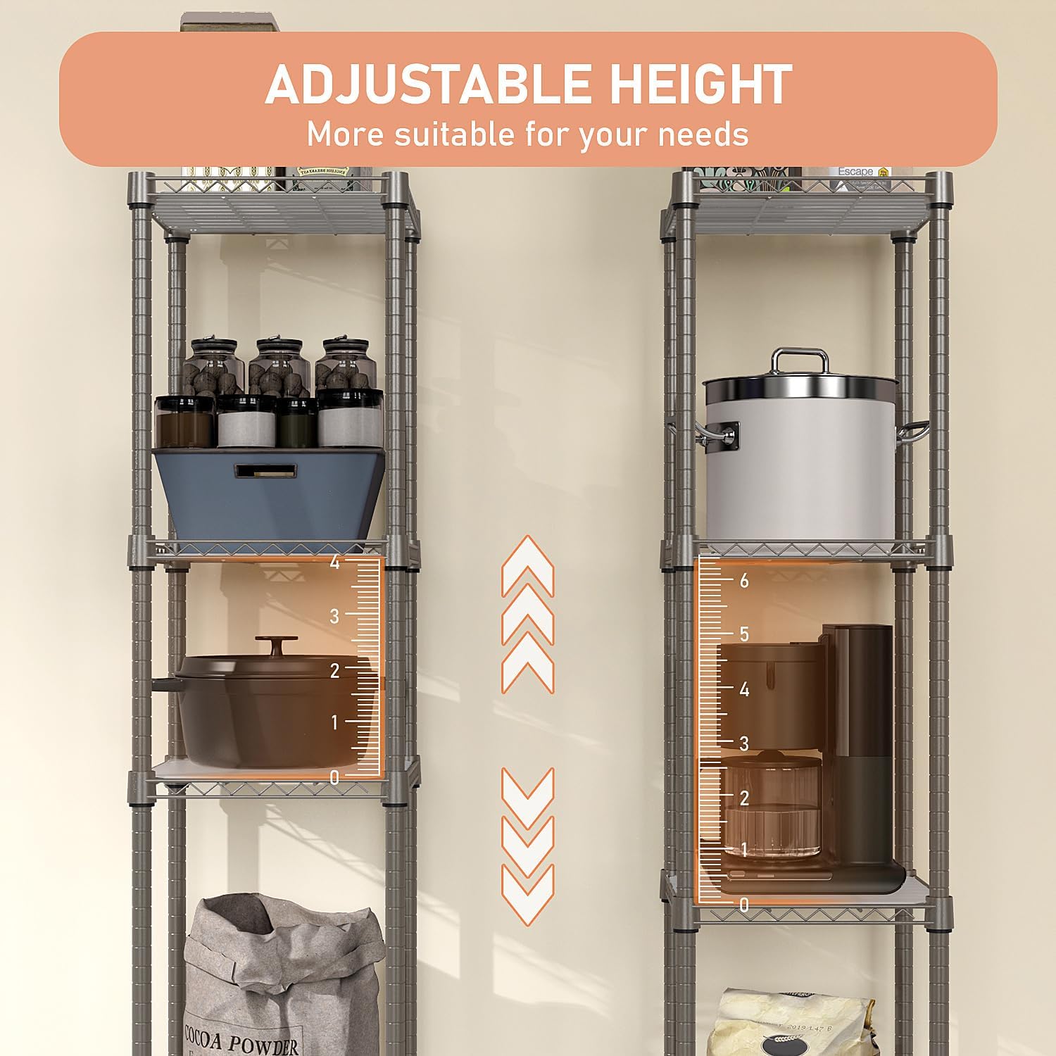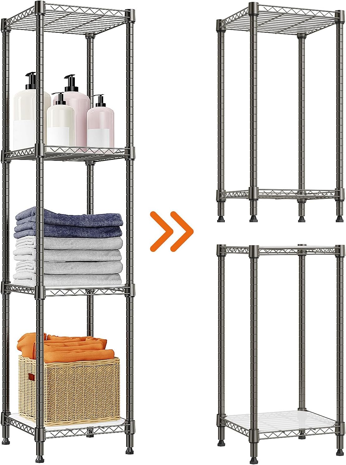 DETACHABLE STORAGE SHELF: The Wire storage shelving can be separated into 2 shelving units to accommodate your needs, for instance, the 4-tier shelf can be assembled as two 2-tier shelves.