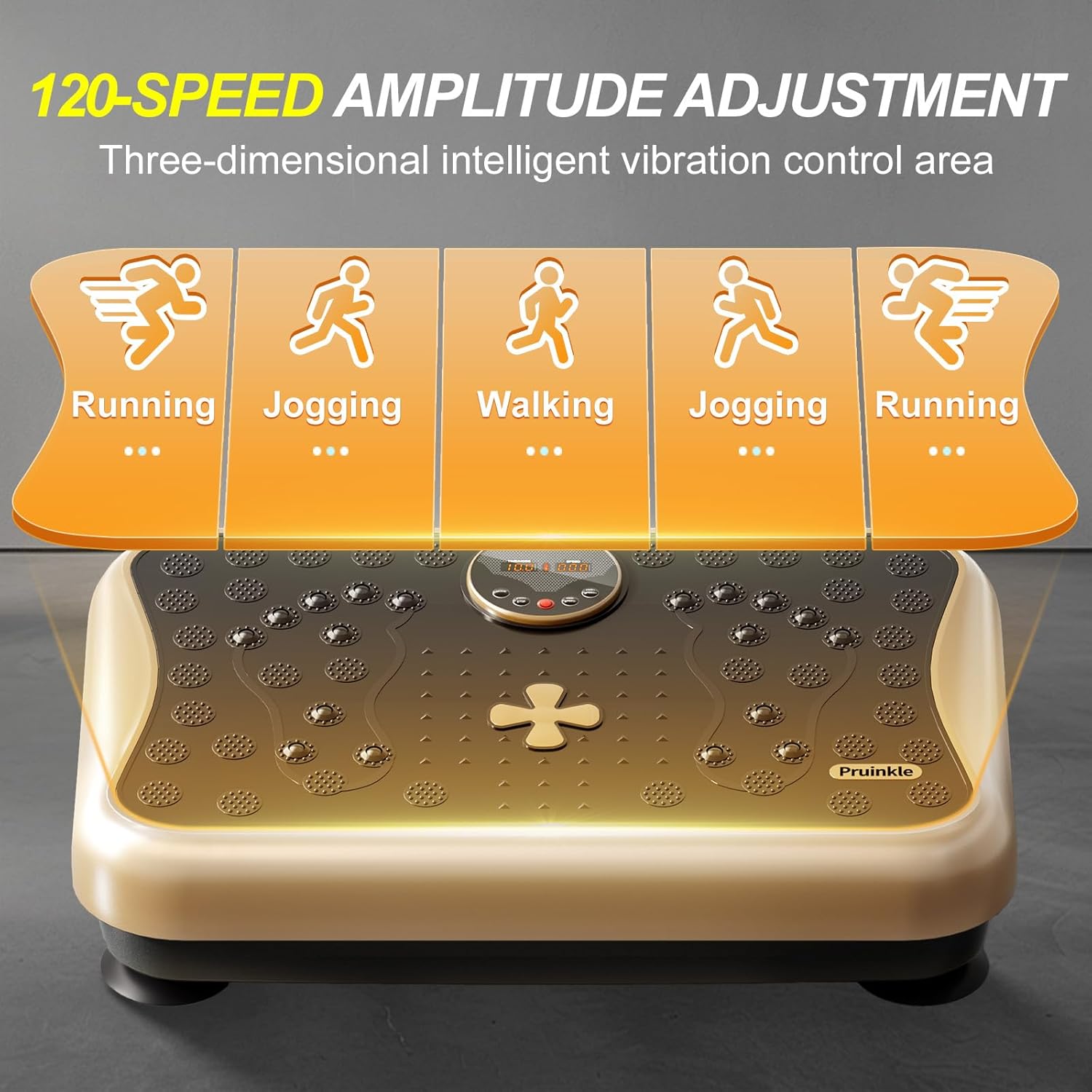 ✅ UNIQUE HIATSU DESIGN: VIBRATION PLATE ON THE SURFACE OF PRUINKLE MACHINE – The PRUINKLE Vibration 4D Full Body Vibration Plate Exerciser features a unique shiatsu plate surface, with the strong vibrations of our platform machine, it stimulates pressure points on the feet, helping to relieve back pain, headaches, insomnia, poor blood circulation, muscle and joint pain, stress and anxiety. This fitness machine helps release blocked energy and promote a healthier lifestyle.