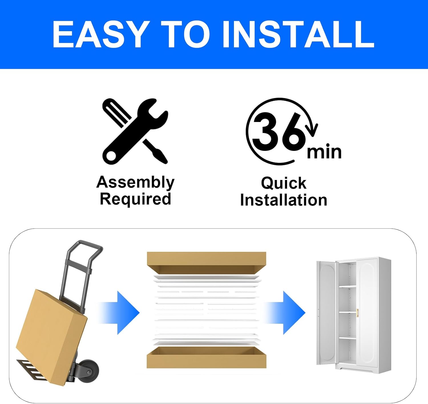 PREMIUM & ENVIRONMENTALLY FREINDLY MATERIAL: POLUP steel storage cabinet adopts thickened cold-rolled steel plate and electrostatic powder spraying technology, not only more sturdy and durable, but also anti-rust,corrosion-resistant, easy to clean, odorless. Beside, we use the environmentally friendly paint to ensure safety for using the kitchen cabinet without any irritating odors and easier maintenance, extended lifespan