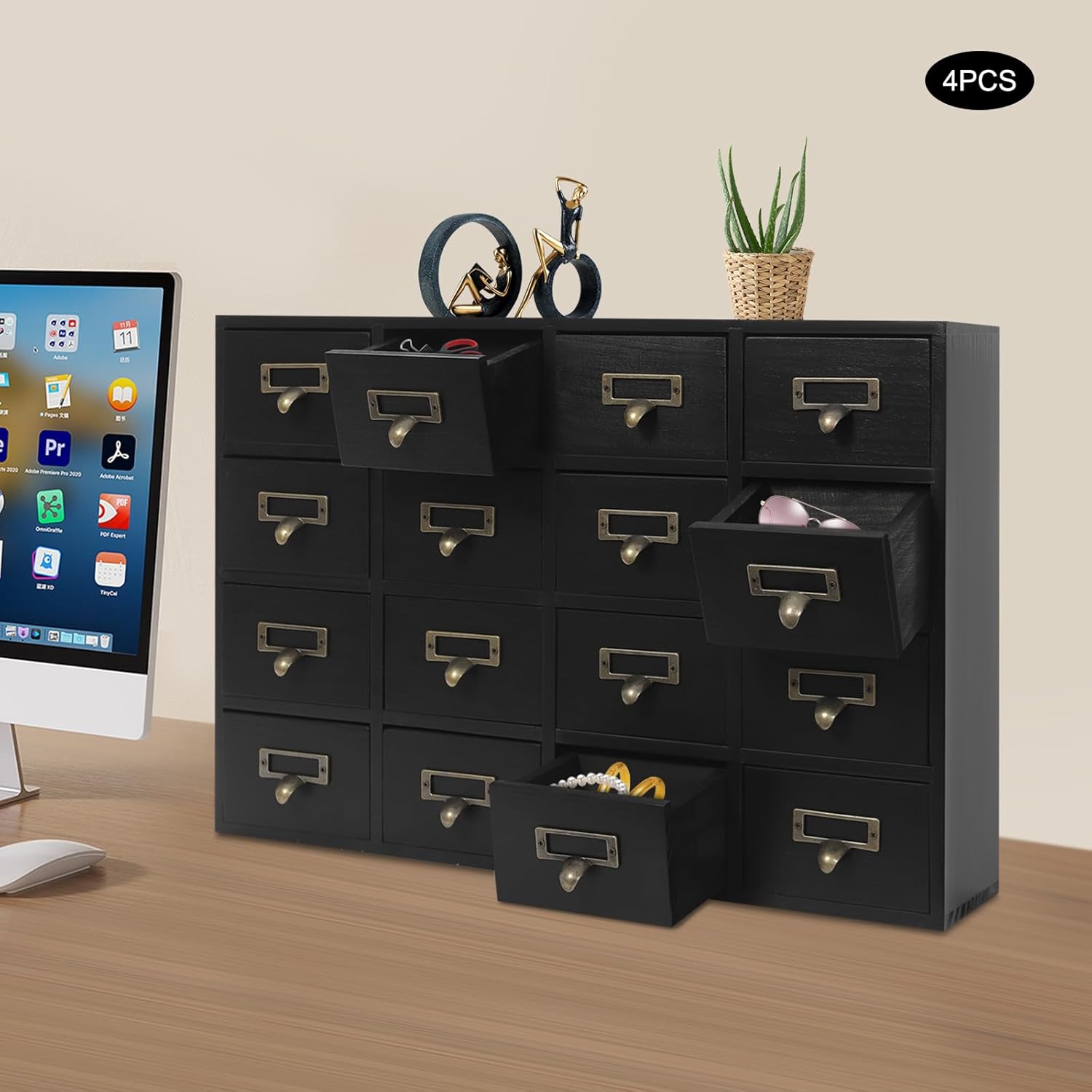 Storage Assistant: The 4 cabinets allow you to use them individually or together for added convenience. 64 compact drawers make it easy to organize and store jewelry, art supplies, cards, notes, tea bags, and other small items. In addition, the top platform allows you to store other items such as table lamps, books, and cups to fully meet your storage needs