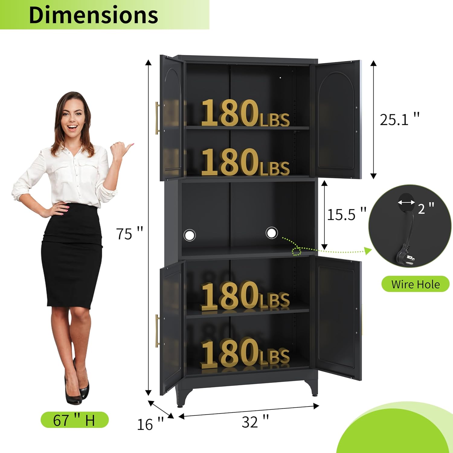 16″D x 32″W x 74.8″H