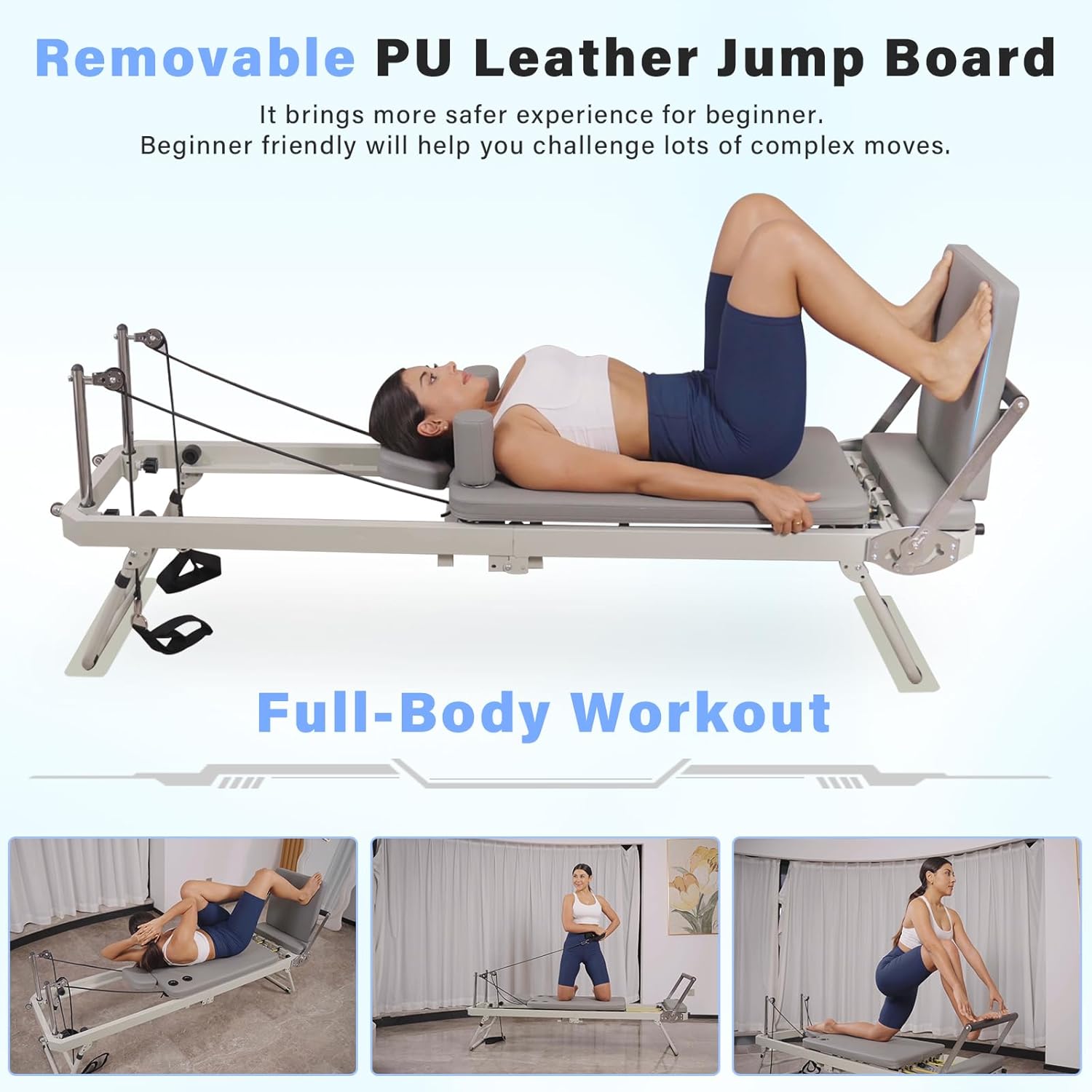 [SILENT AND SMOOTH MOVEMENT & STABILITY SUPPORT] – Our Pilates Equipment structure features High-density steel with delicate luster of metal, can support up to 400 lbs weight. The support system provides 8 silent smooth wheels, ensuring an enjoyable personal home workout. The premium padded foam can last comfort and stable use for a long time, other that, foldable leg extra equipped with 2 non-slip foam pad will enhance stability and comfortable use