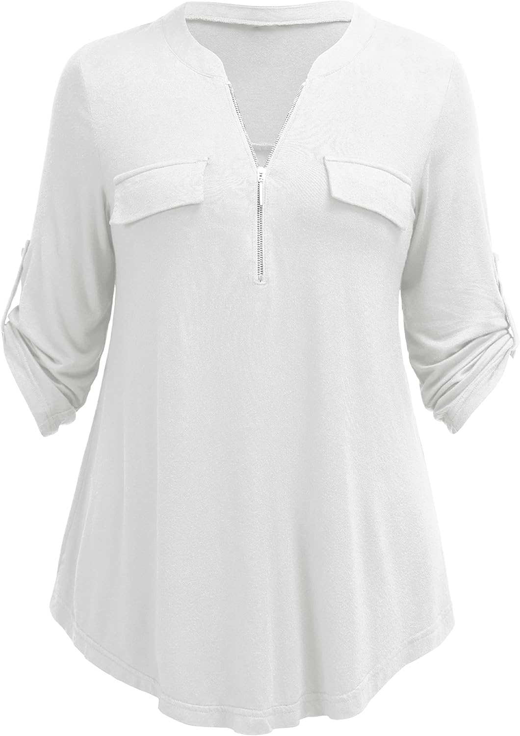 a.Jesdani Women’s Plus Size Tops 3/4 Roll Sleeve Shirts V Neck Blouses Tunic Top