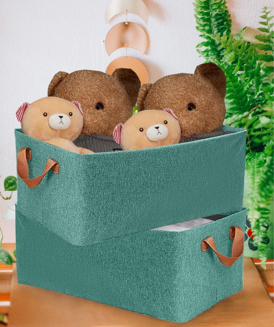 【Superior Material】Green wardrobe storage bins with handles are made of high-quality linen fabrics, which is odorless, durable and strong enough to hold your items, giving a solid and neat facade for long-term use.