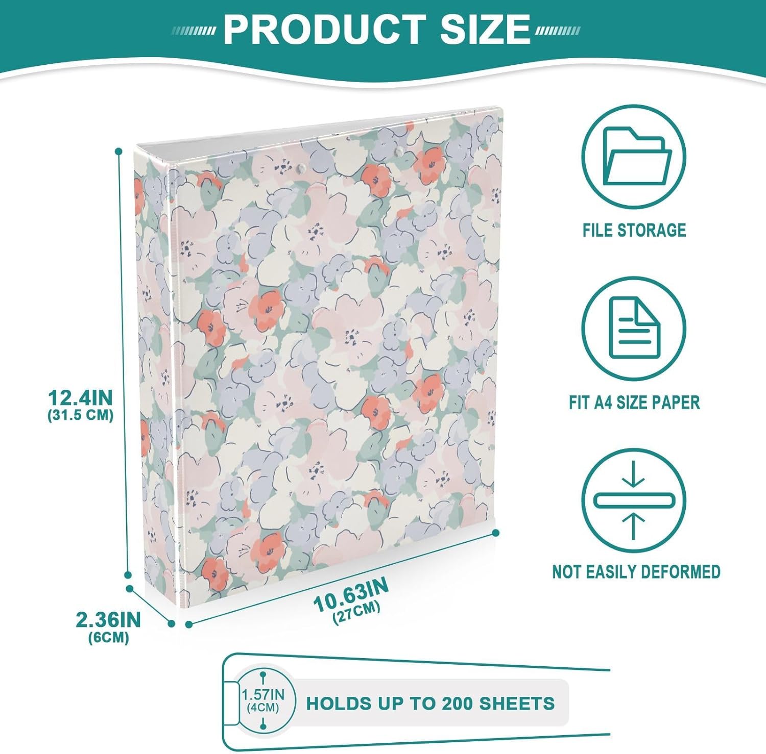 【BEAUTIFUL&HEAVY DUTY】The three ring binder features Cute Hand Drawn Feminine Watercolor Wildflowers Patterned design. Rust-free D-ring works better with most insert sheets than round ring. The closed rings are easy to open. This professional view binders is ideal for school, home, office, journal, photo, organizing, presentations, etc.