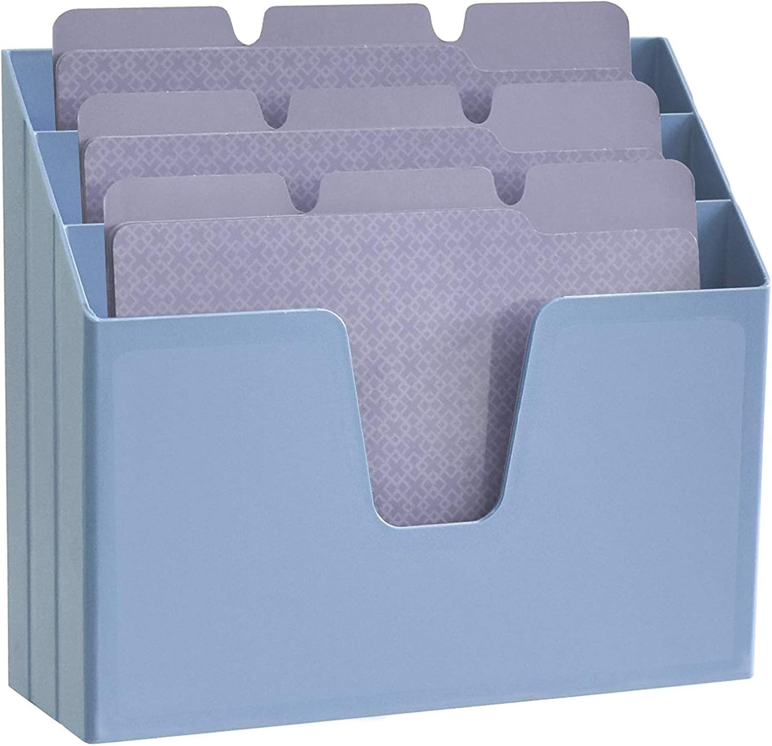Customers find the file folder holder sturdy and appreciate its beautiful colors. They like its storage capacity, with one customer noting it’s perfect for holding plastic folders, while another mentions it’s great for storing calendars.