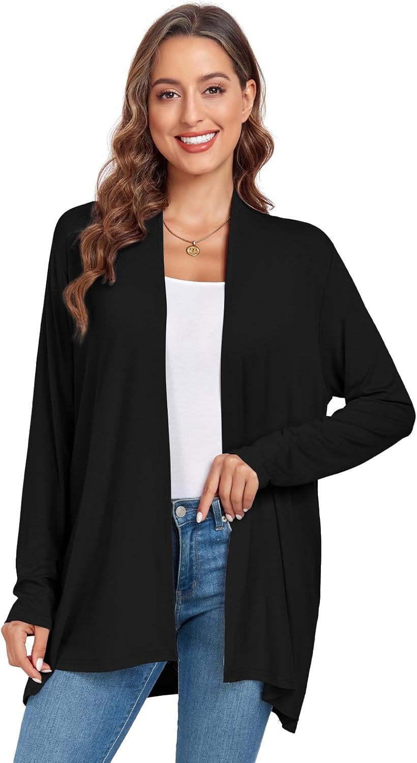 Womens Casual Basic Soft Open Front Classic Long Cardigan