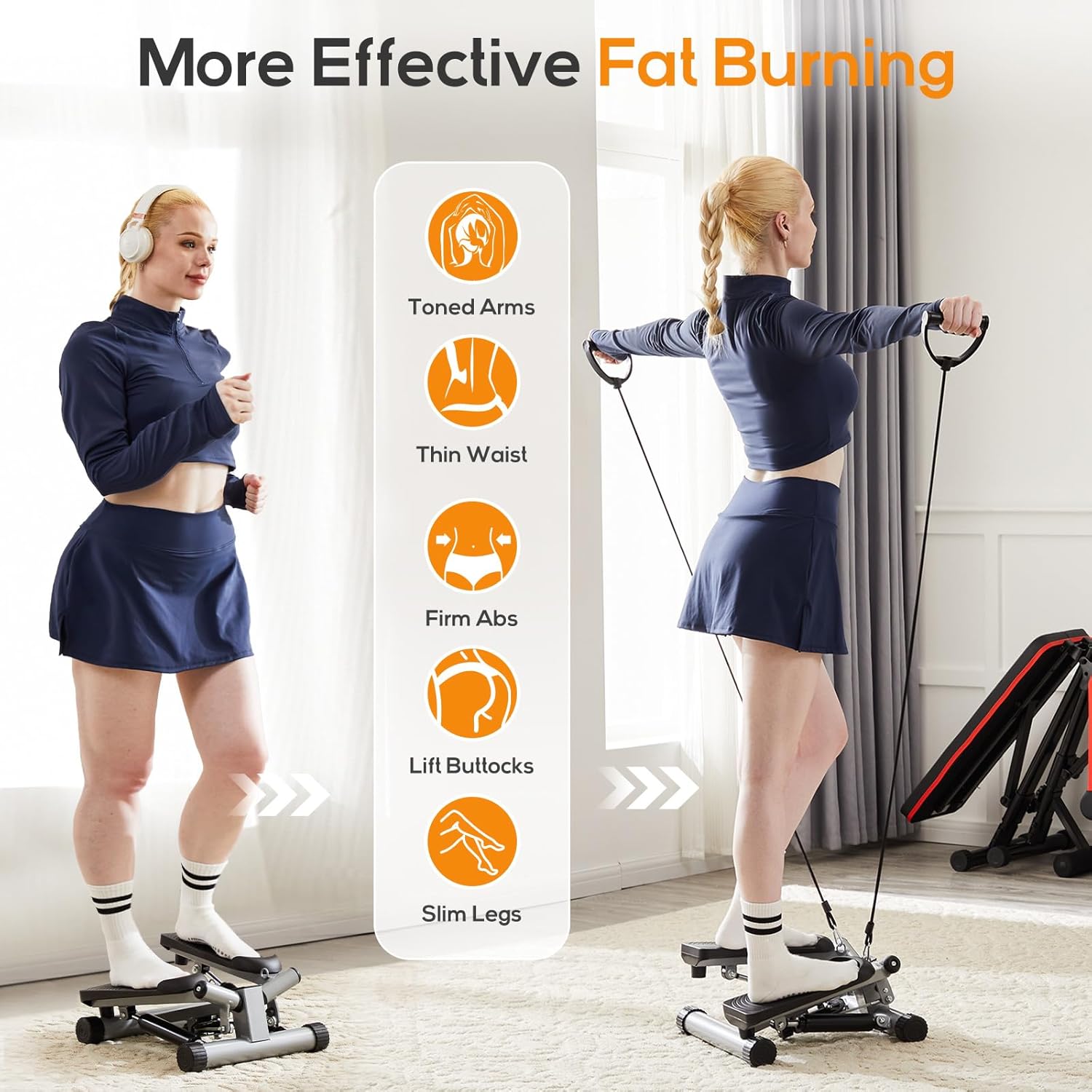 【Versatile Home Workout Solution】This stepper is designed for a variety of fitness routines, featuring removable resistance bands that allow you to engage your arms, shoulders, chest, and back simultaneously. Whether you’re a beginner or an experienced fitness enthusiast, this stepper caters to your needs, helping you achieve your fitness goals from the comfort of your home.