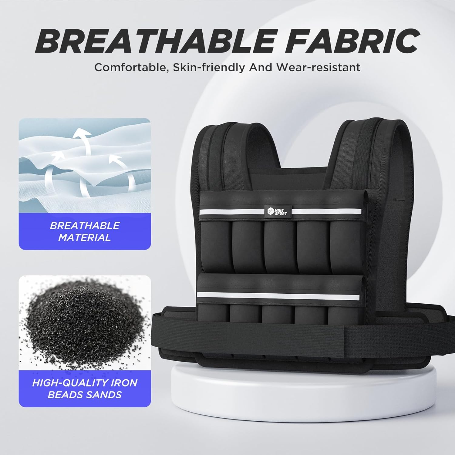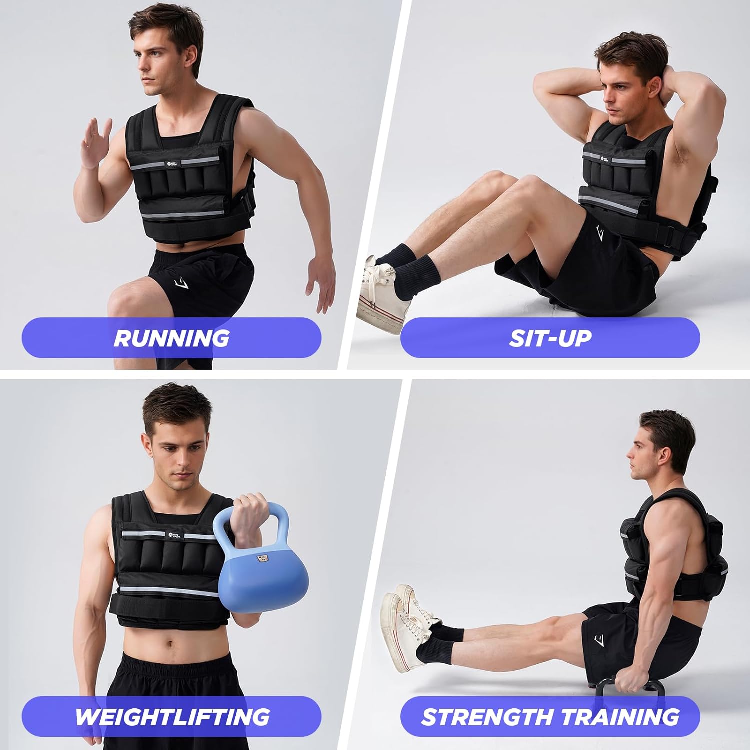 CONVENIENT DESIGN-Weight vest with reflective stripe is very easy to put on and take off, fully adjustable at the waist, ensuring a secure and snug fit, evenly distributes its load even during intense workouts. The reflective strips on the front and back of the vest enhance visibility in low-light conditions, ensuring the safety nighttime workouts