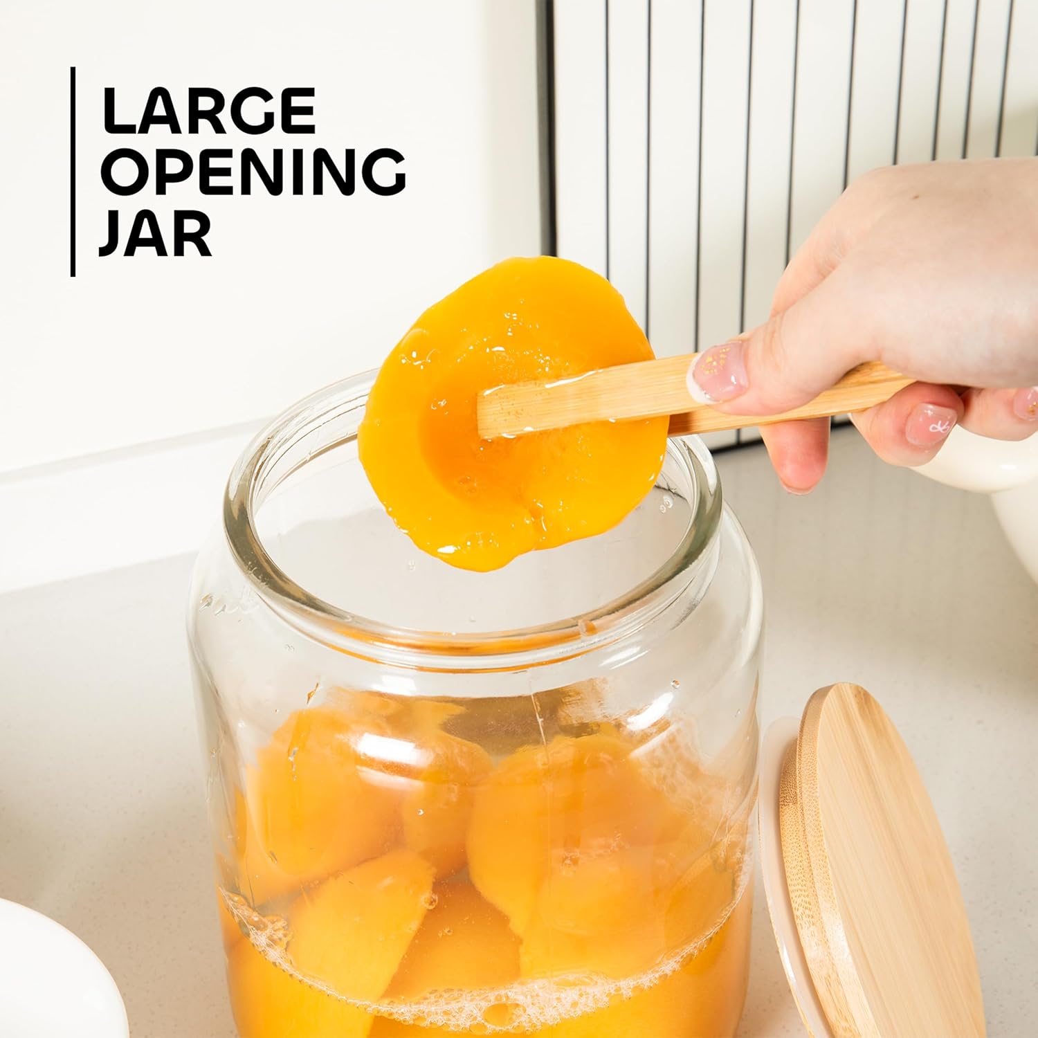 Tidy storage doesn’t have to be hidden. The large glass storage containers set by JPM Savings is designed to bring clarity and calm to your home—whether you’re organizing laundry pods, pantry goods, or bathroom essentials. These versatile glass kitchen storage containers make it easy to see what’s inside, while the matching bamboo lids add a soft, natural touch that works in any room. Each glass container with bamboo lid holds up to 2 liters and features a wide mouth opening, so scooping or refilling is simple. You’ll also receive a wooden scoop, wooden tongs, and adhesive labels to help make everything feel in place. From bathroom counters to kitchen shelves, these glass jars with wood lids will help you keep things neat and easy to find without sacrificing style. Just clean lines and clear storage with each glass canister, and practical tools to help you feel more organized in your space.