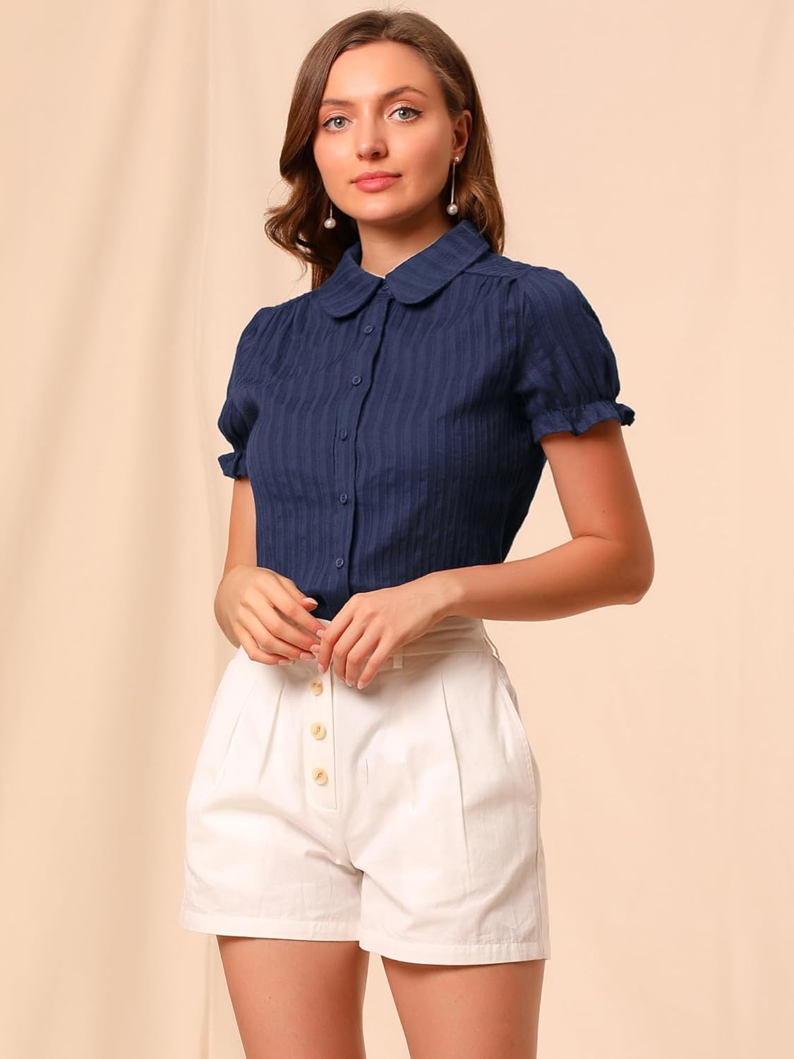 Graceful and elegant, this top with fresh flowers features a button-down and ruffle cuff.