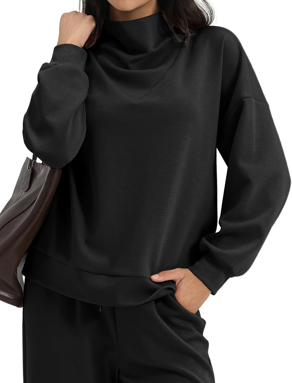 The video showcases the product in use.The video guides you through product setup.The video compares multiple products.The video shows the product being unpacked. Amoretu Women’s Casual Cowl Neck Sweatshirt Merchant Video