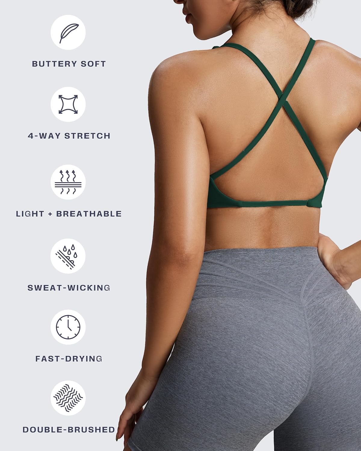 Customers find this sports bra flattering with beautiful colors and appreciate its buttery soft fabric that feels like Lululemon Align leggings. The bra provides good support without being tight, stays in place during workouts, and holds up well through washes cycles. They like its effectiveness for various activities, including running and lifting, and its stretchy straps.
