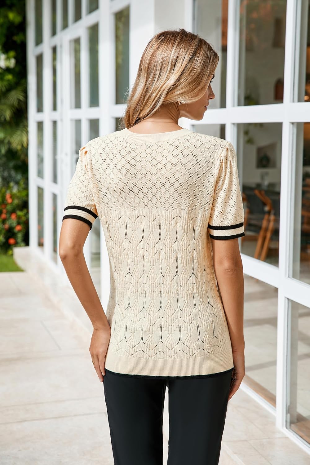 Arach&Cloz 2025 Womens Summer Cotton Crochet Shirt Breathable Dressy Casual Tops