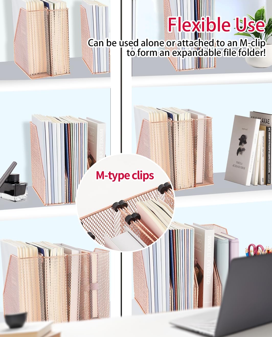 CUSTOMIZABLE ORGANIZATION: 4 desk file organizers for flexible office organization at home, office, or school. Attach to an M-clip for expandable use. Quick-release clips ensure adaptability.