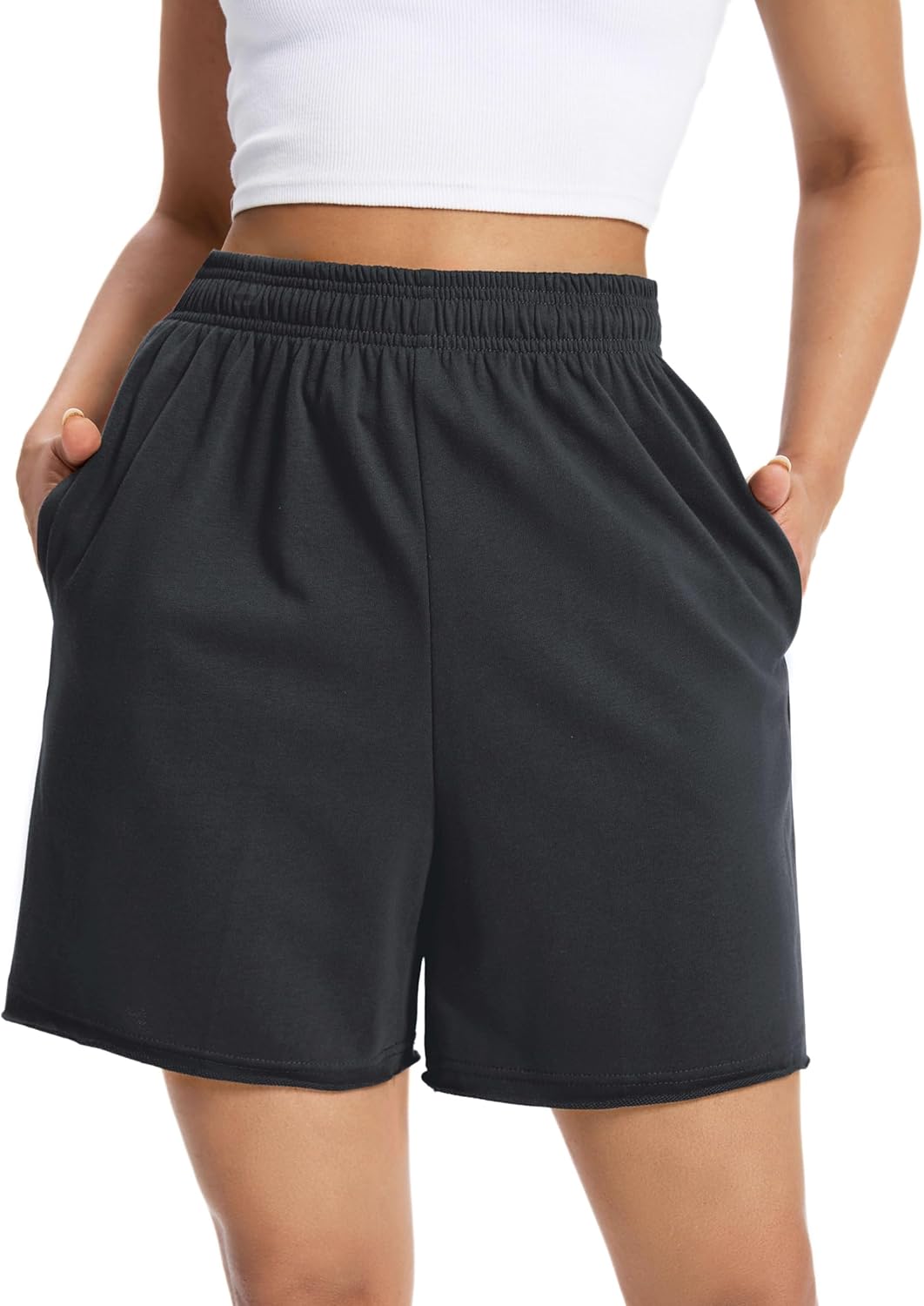 Auriviz Womens Sweat Shorts Comfy Cotton Casual Drawstring Shorts Workout Lounge High Waisted Summer Shorts with Pockets