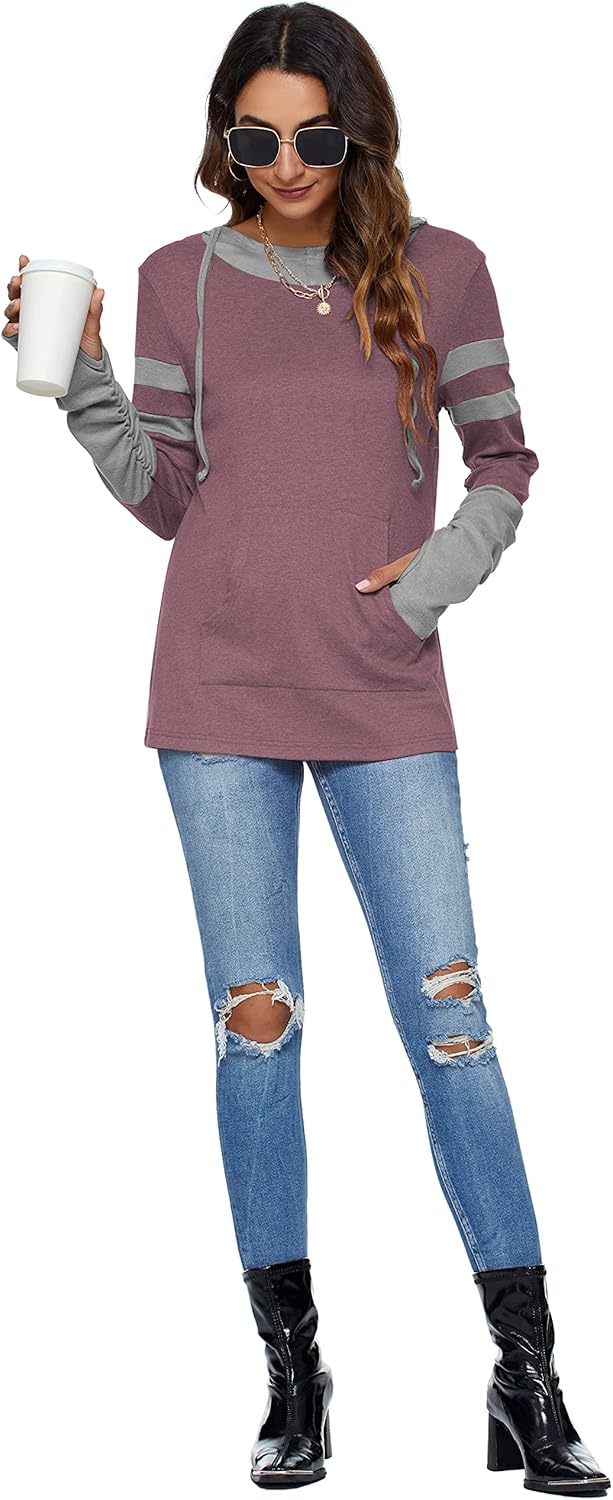 AUSELILY Long Sleeve Tops With Pockets Women Hoodie With Thumb Holes for Women hoodie with thumb holes womenhoodie with thumb holes women